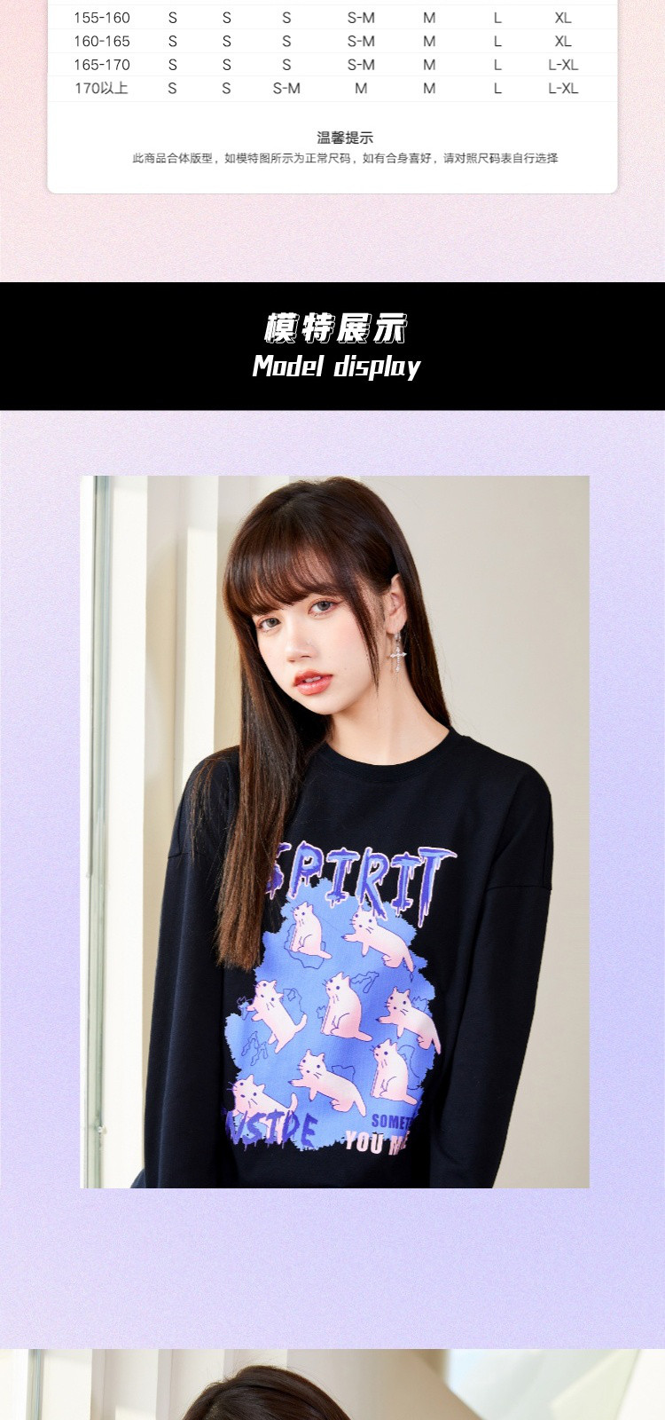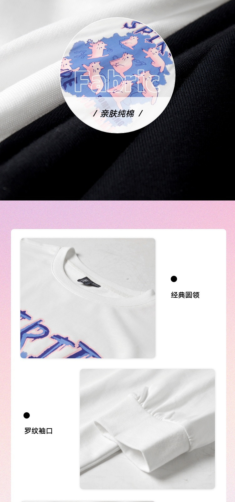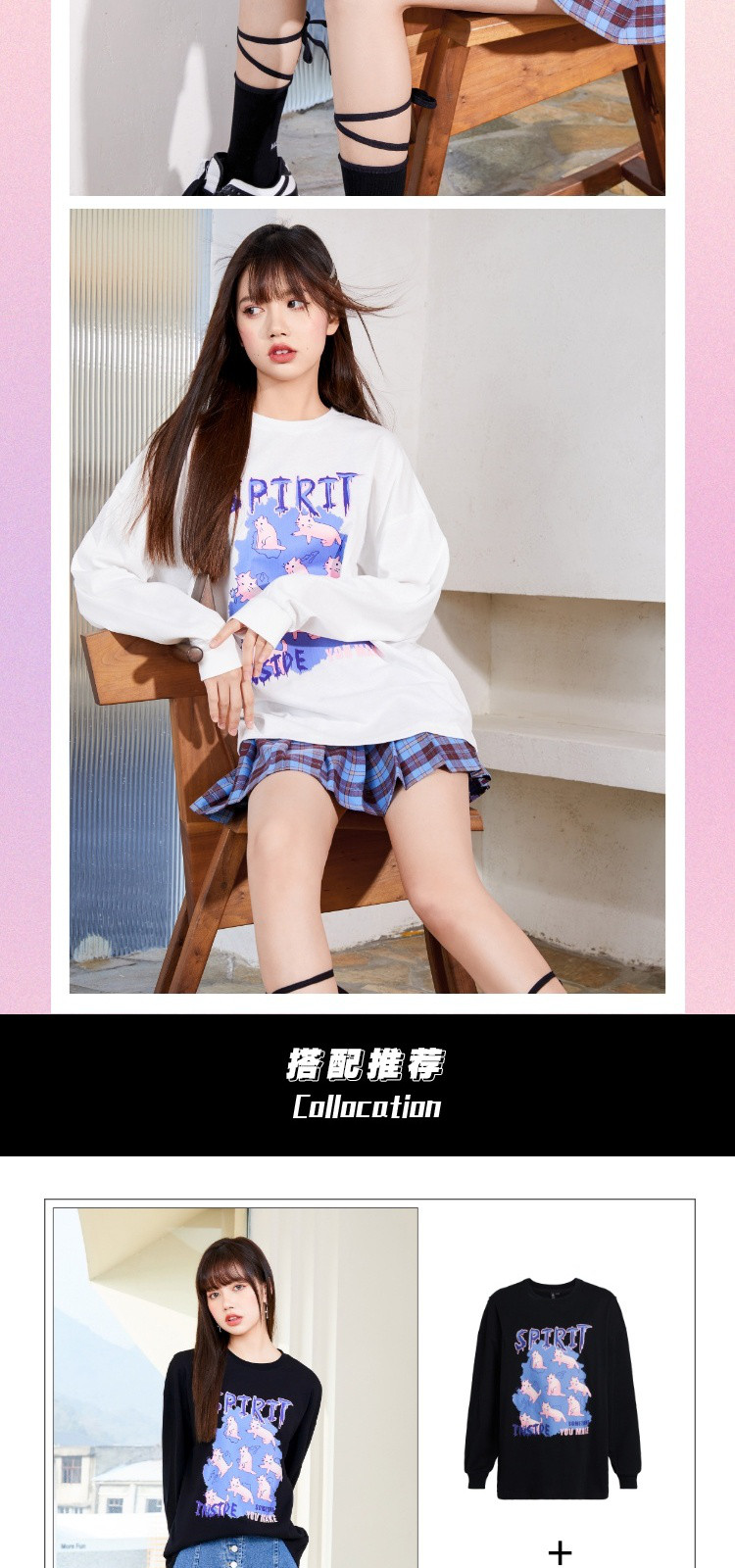 商品名称:春秋卡通兔子印花圆领长袖T恤女时尚宽松原宿风上衣 948756