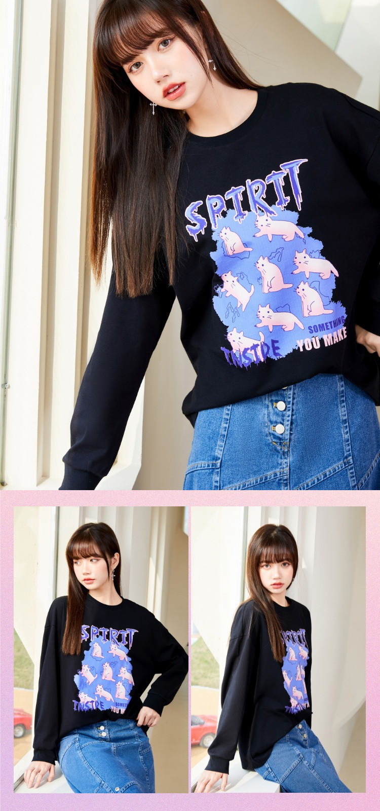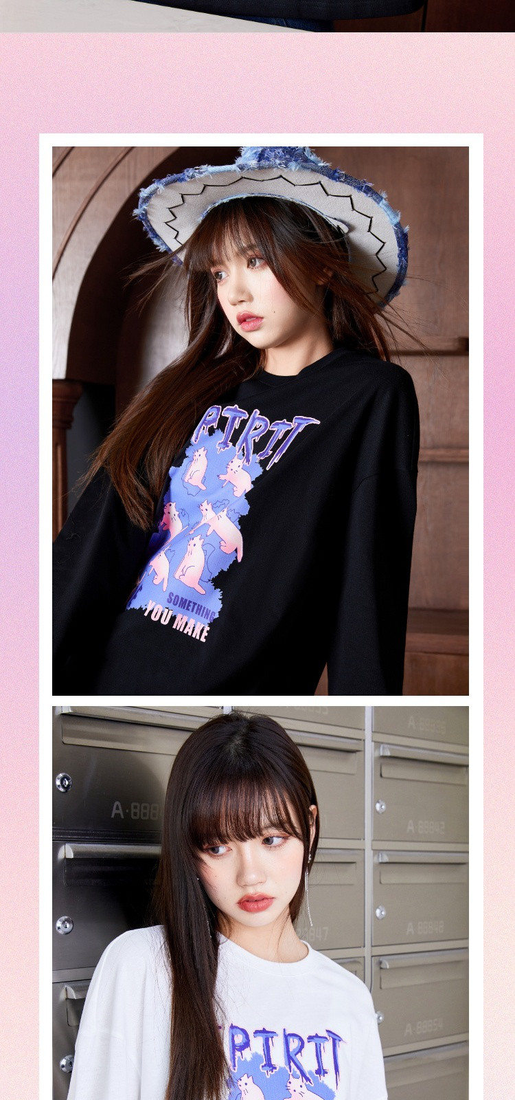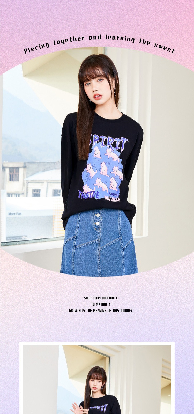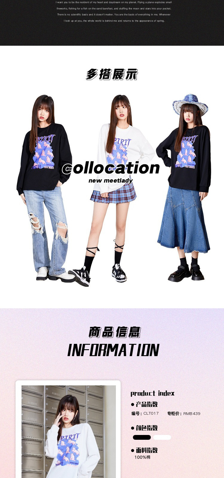 商品名称:春秋卡通兔子印花圆领长袖T恤女时尚宽松原宿风上衣 948756