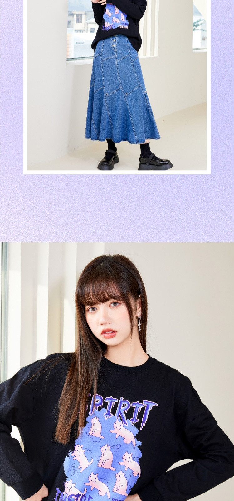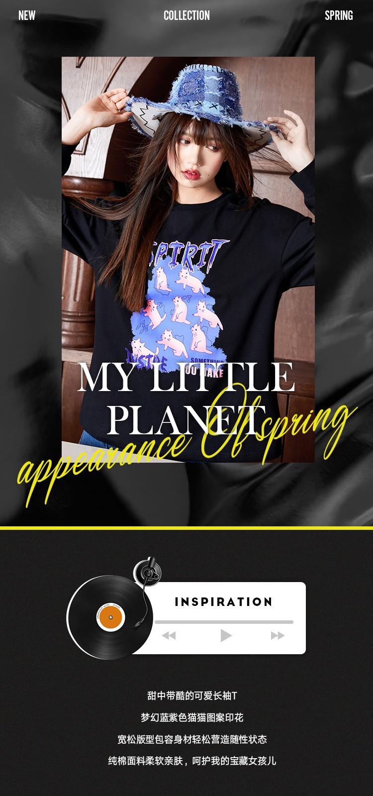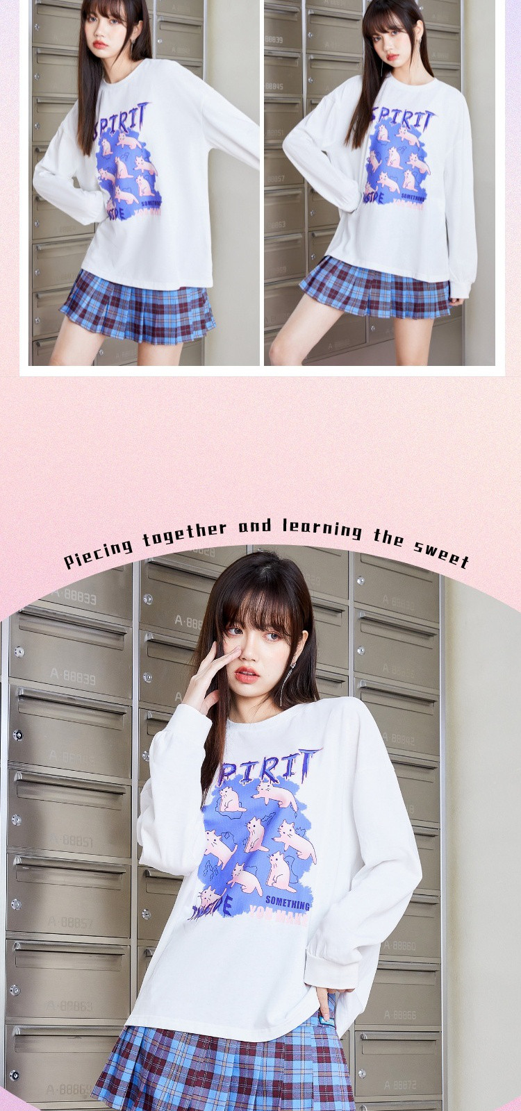 春秋卡通兔子印花圆领长袖T恤女时尚宽松原宿风上衣 948756