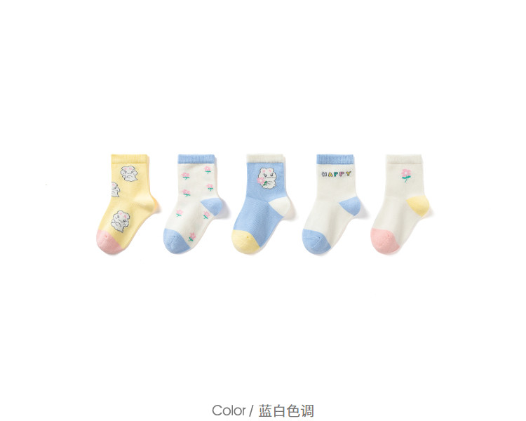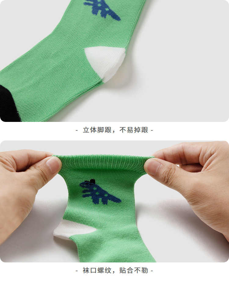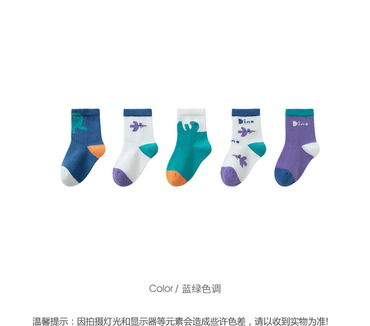 商品名称:舒适趣味恐龙图案中筒袜婴幼袜子男童女童春秋弹力不勒脚五双装 083973