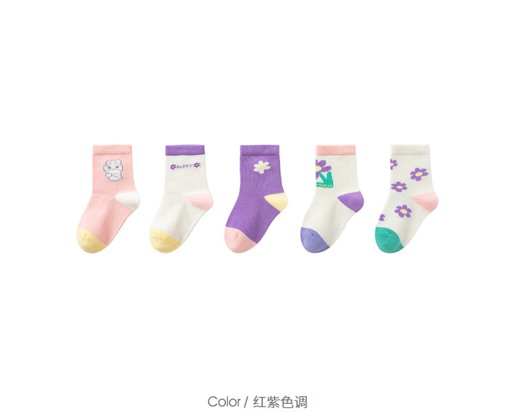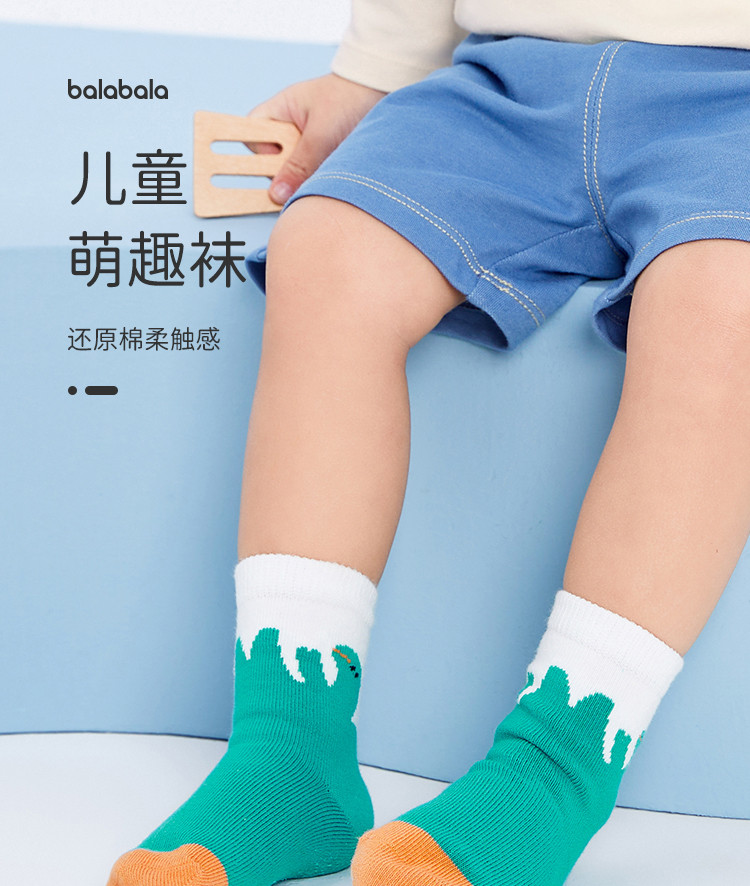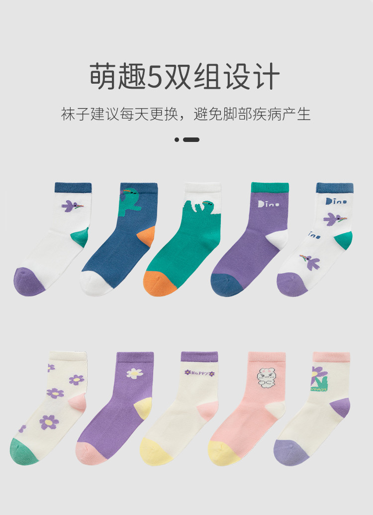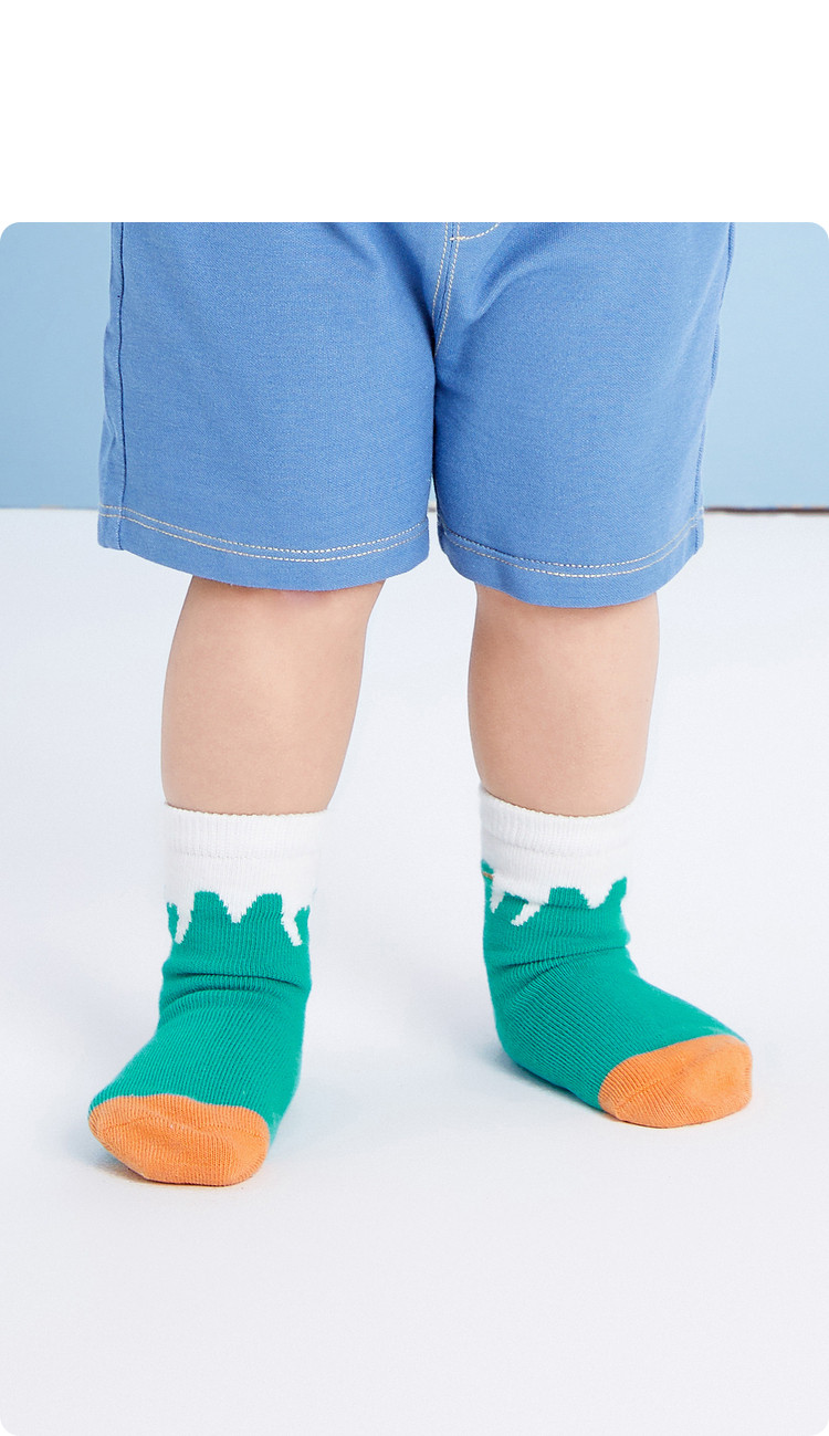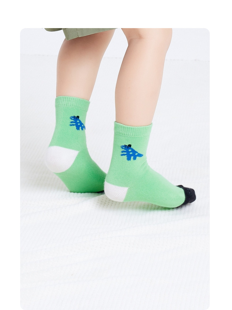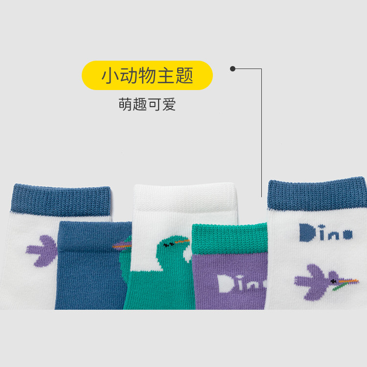 舒适趣味恐龙图案中筒袜婴幼袜子男童女童春秋弹力不勒脚五双装 083973