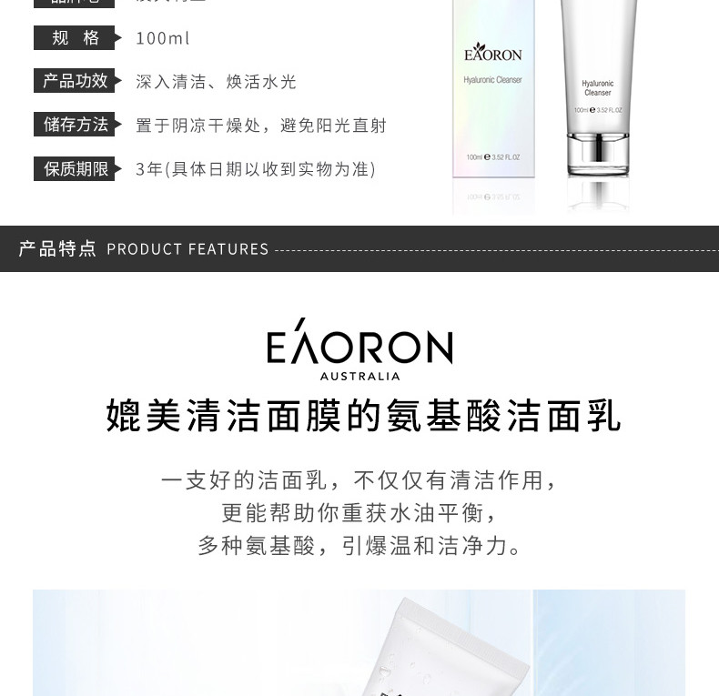 商品名称:新旧随机 EAORON 水光洁面乳 100ML