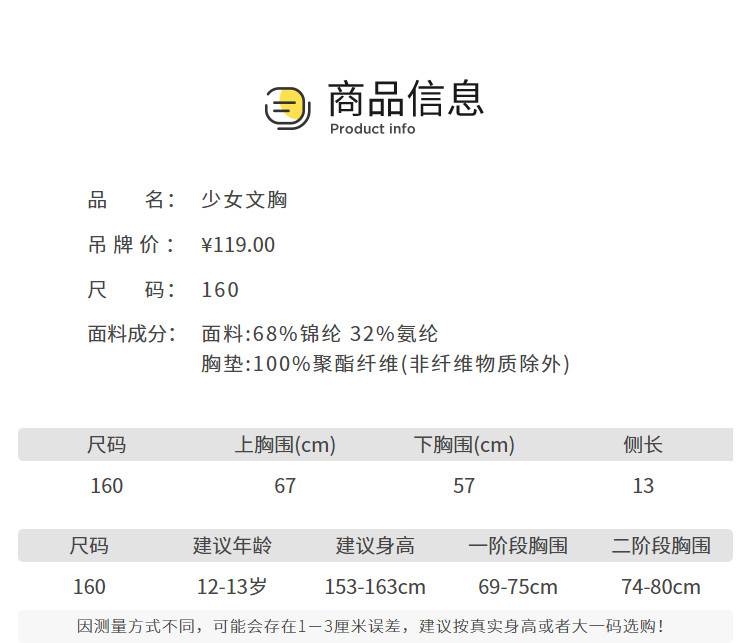 商品名称:无痕随心裁锦纶透气防凸点走光文胸女童小背心内穿儿童内衣发育期 851973