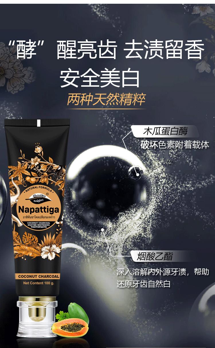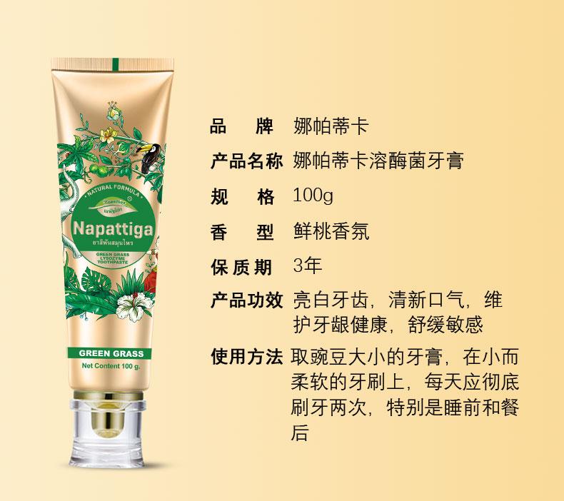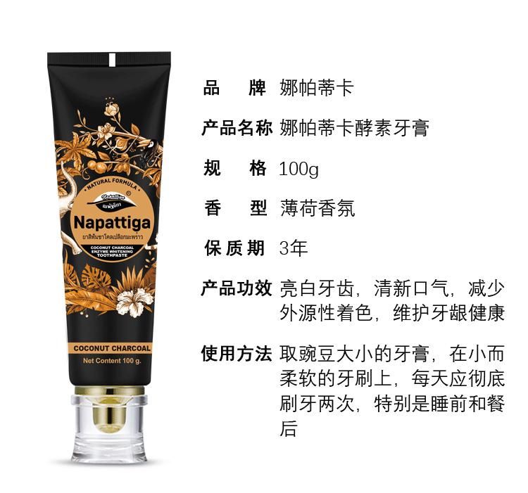 商品名称:泰国娜帕蒂卡 酵素去渍溶菌酶减少牙班牙膏(100g )