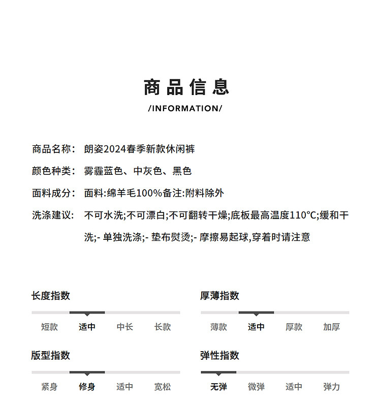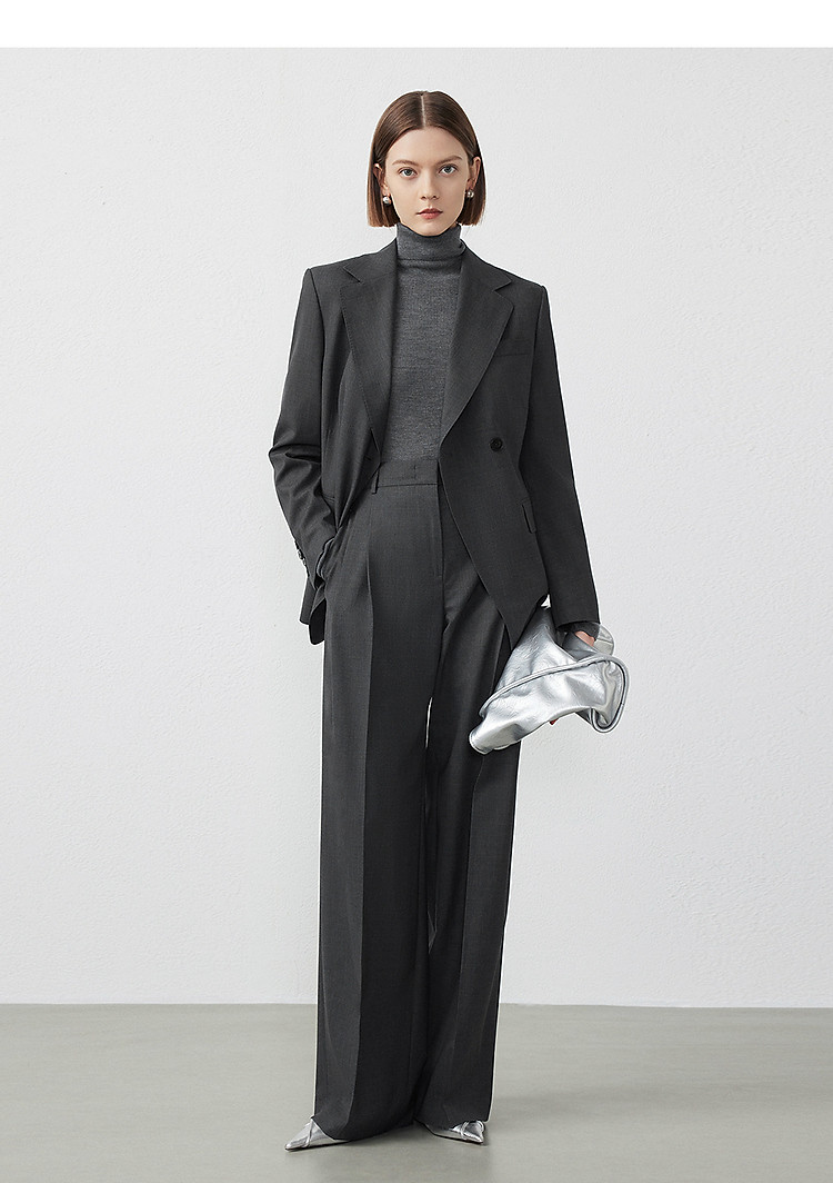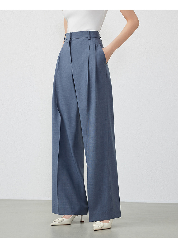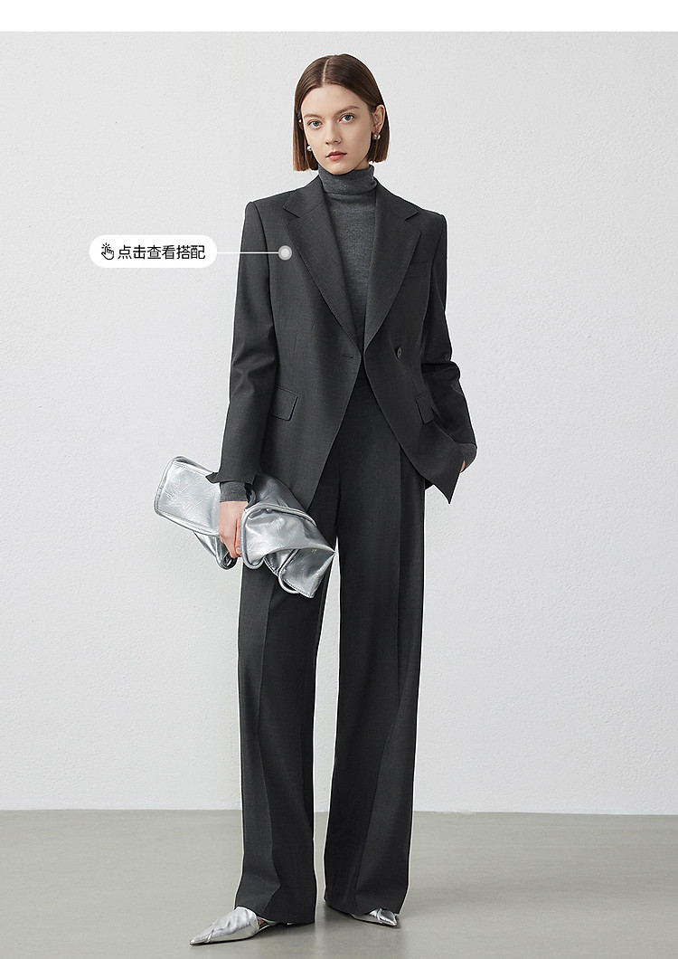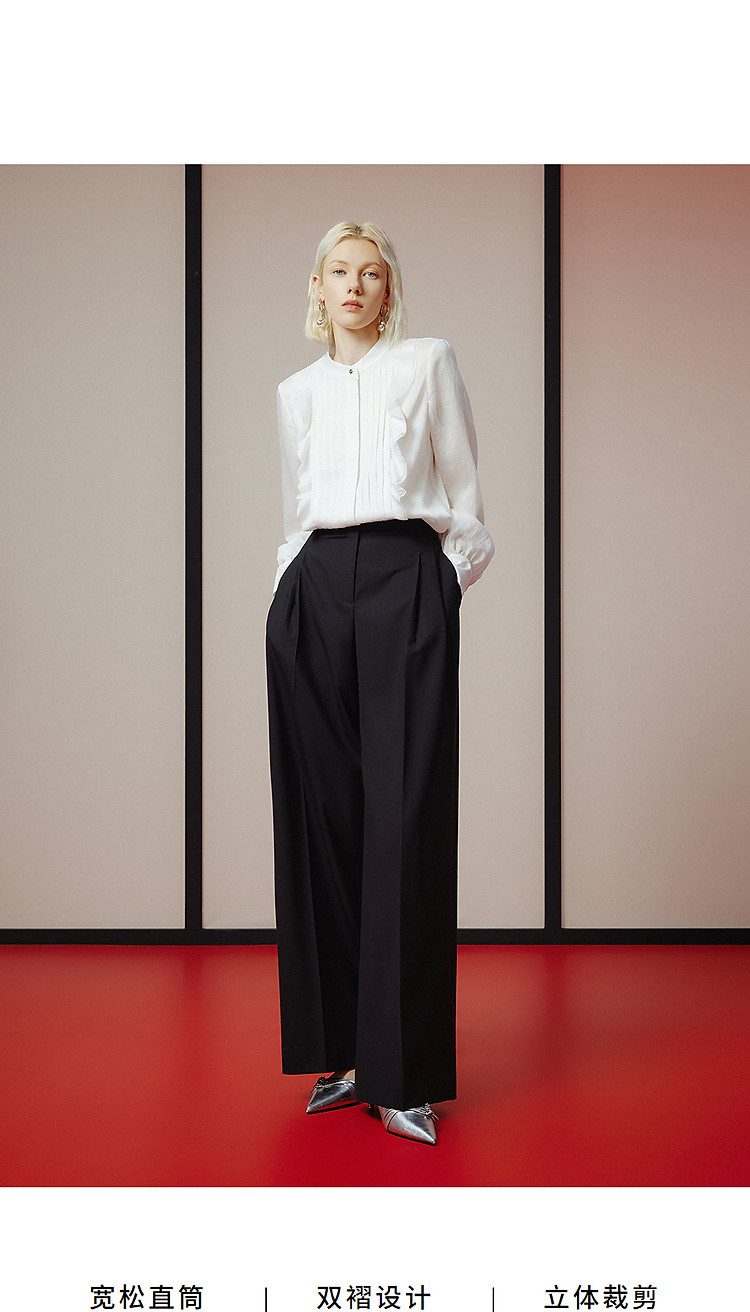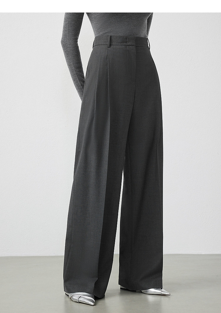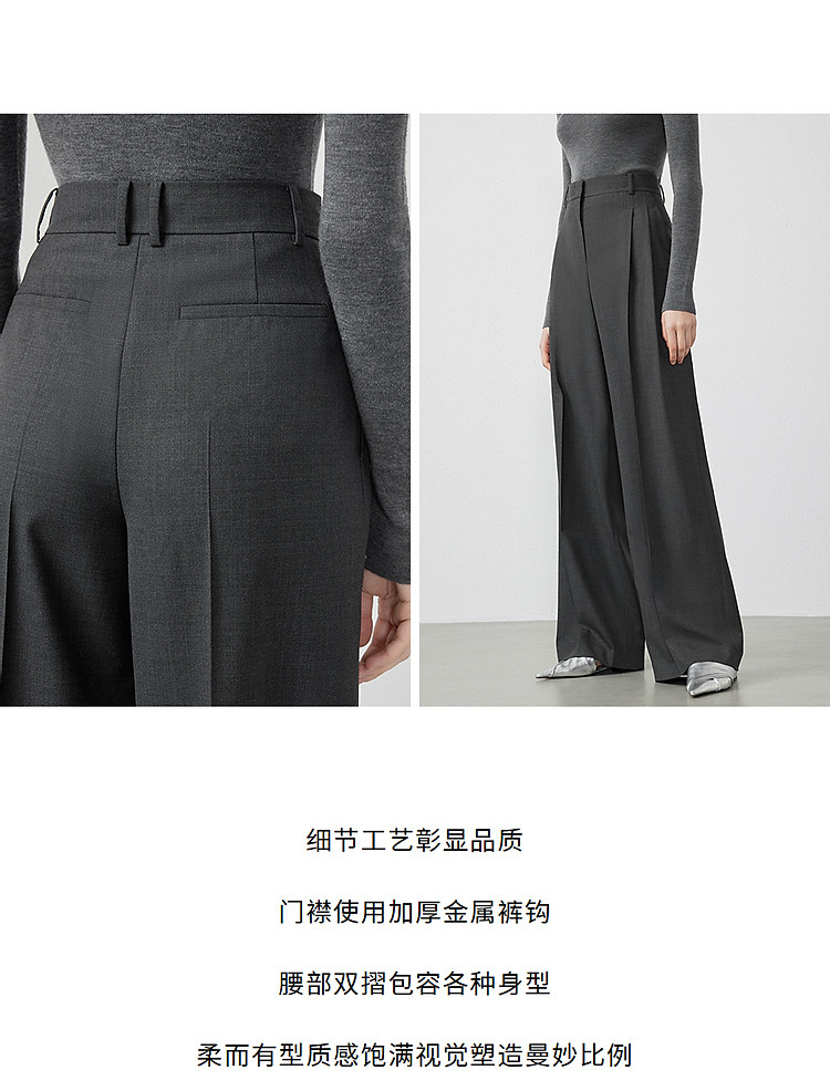 商品名称:纯羊毛宽松显瘦直筒长裤子女春秋款气质高级感休闲裤 186265