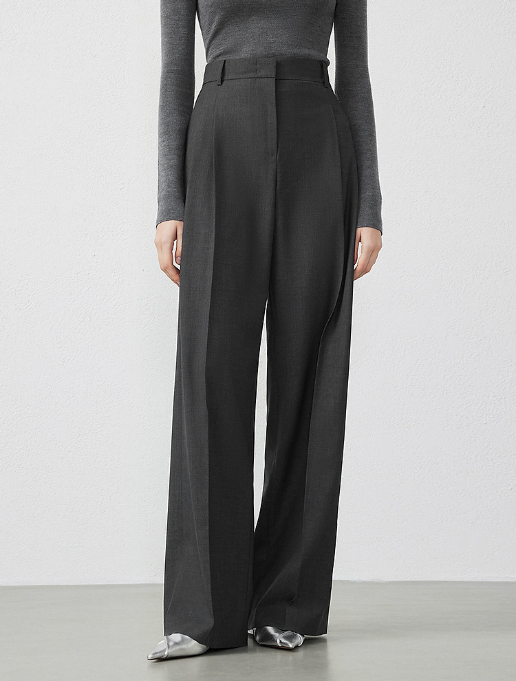纯羊毛宽松显瘦直筒长裤子女春秋款气质高级感休闲裤 186265