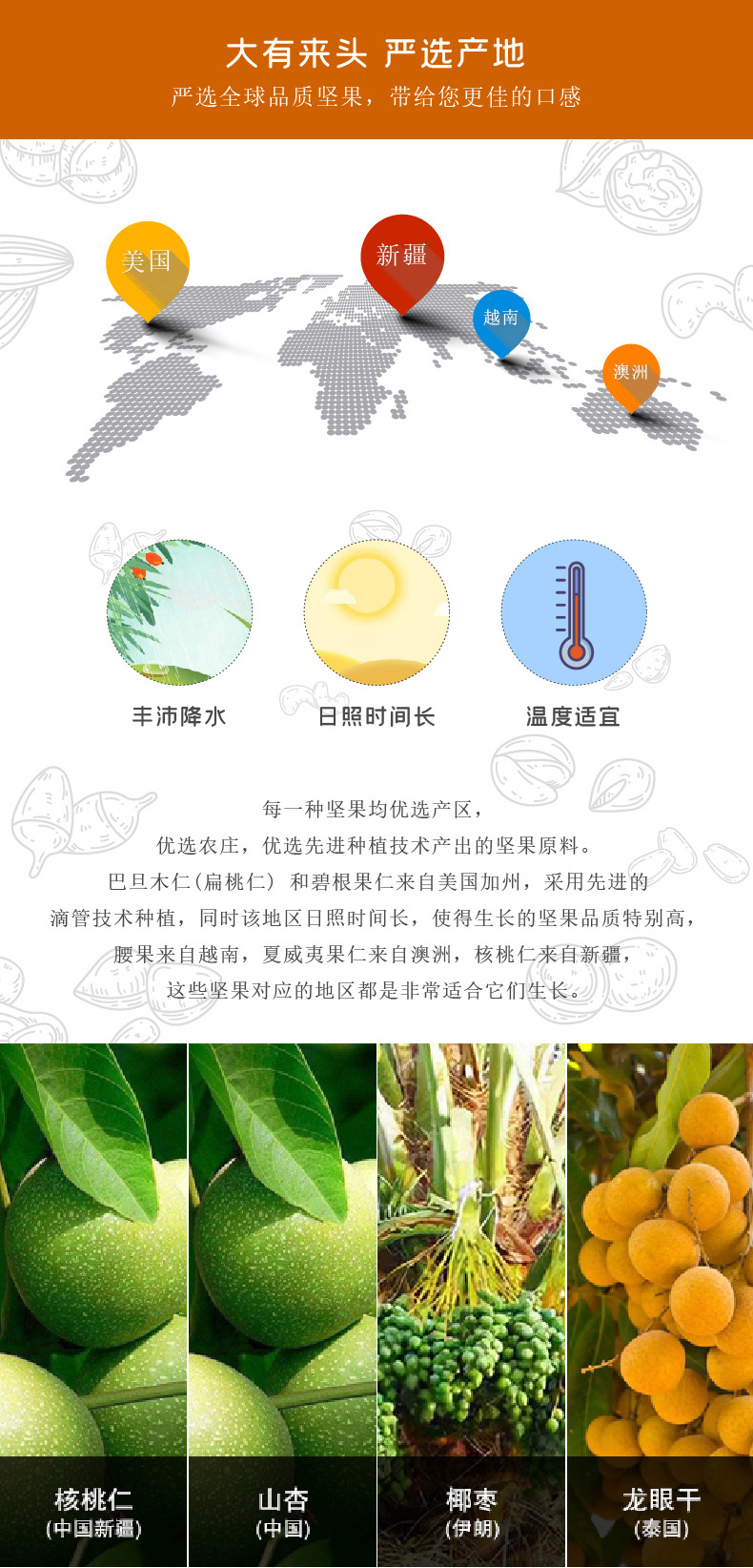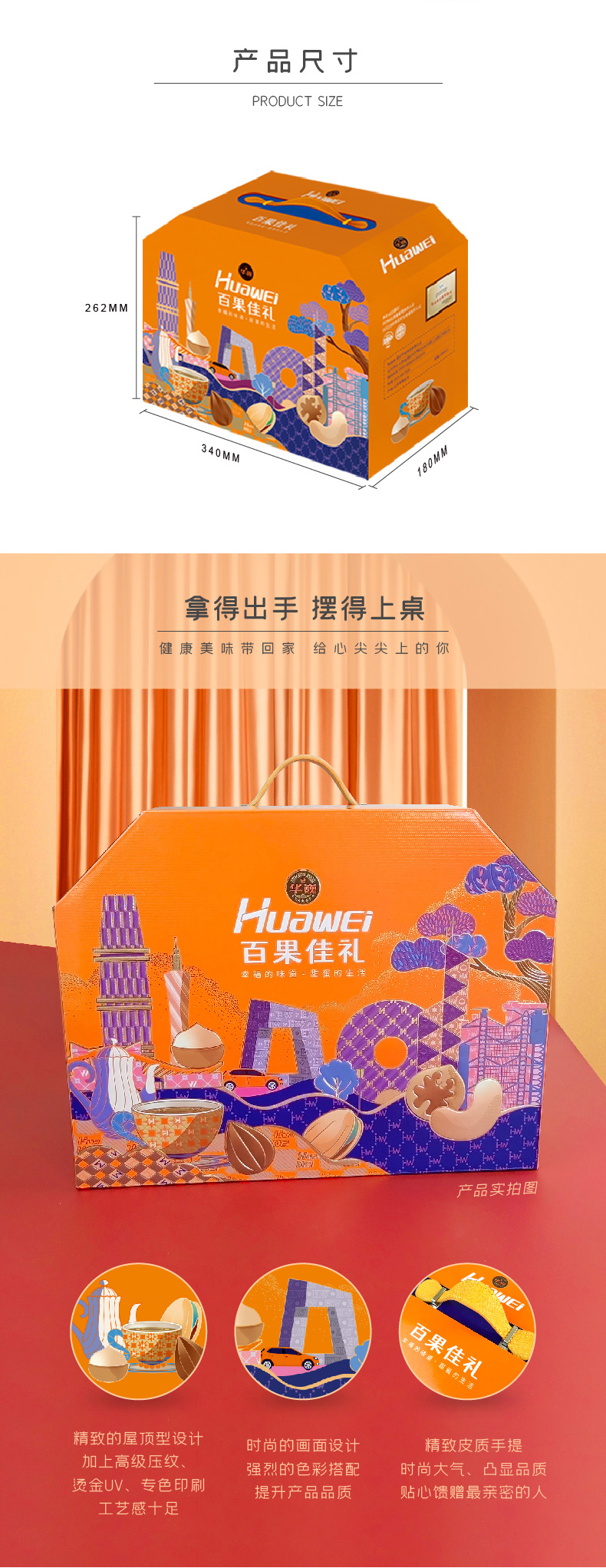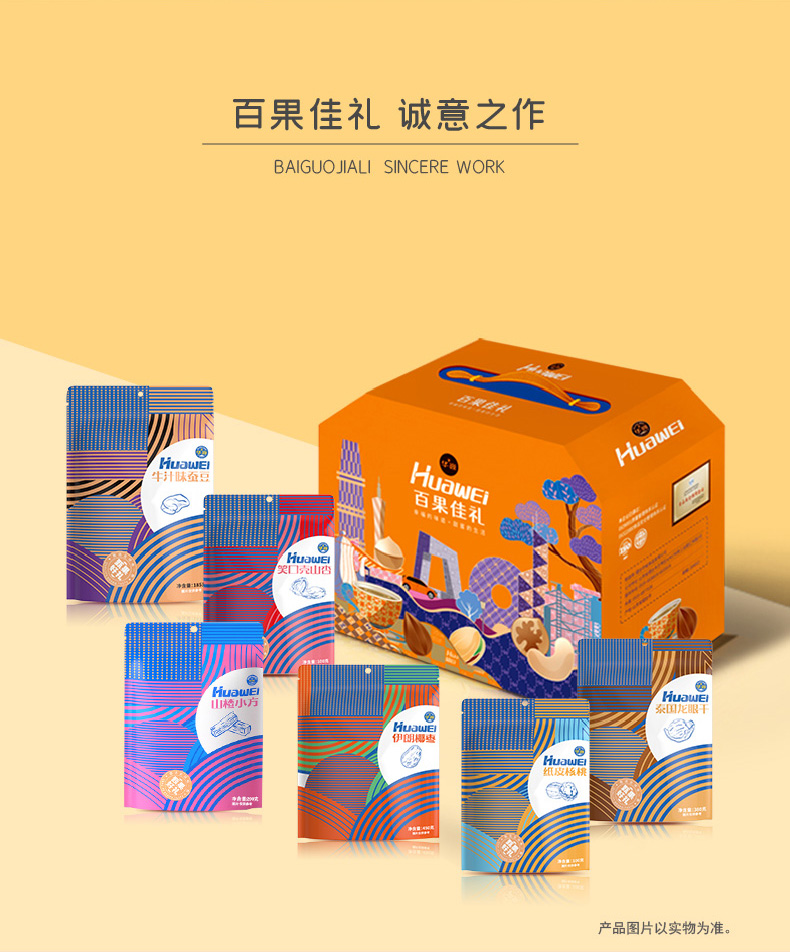 商品名称:华巍百果佳礼(6袋装)商超版1415g /盒(笑口山杏/兰花豆/薄皮核桃/山楂小方/椰枣/龙眼干)