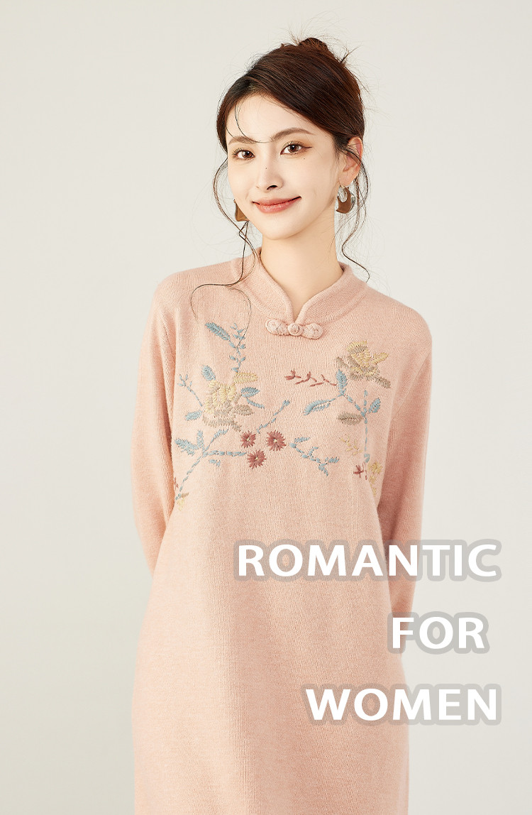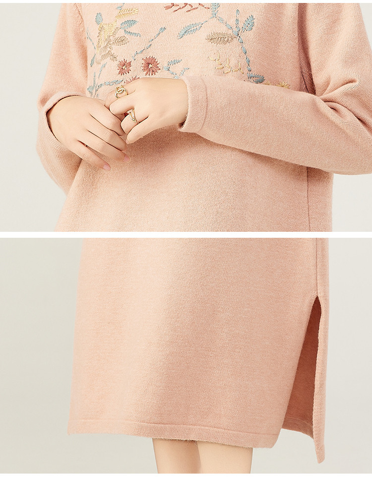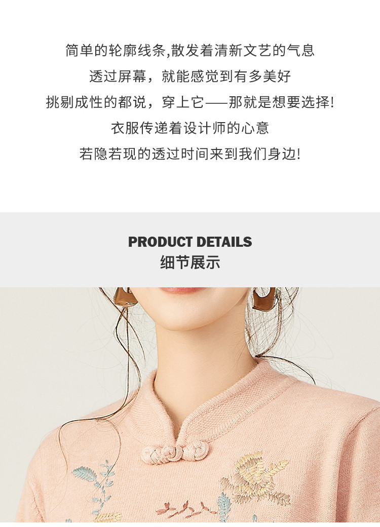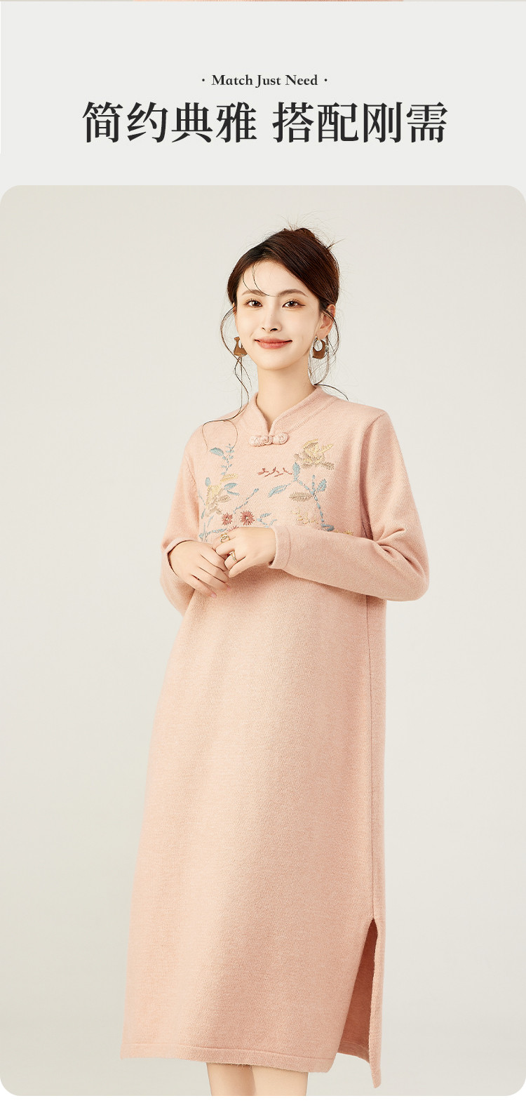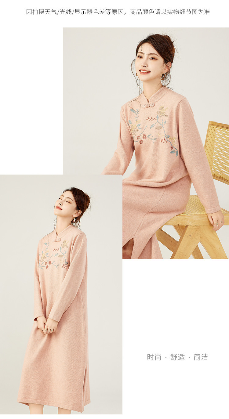 商品名称:【新中式国风立领盘扣】秋冬精致刺绣设计侧开叉旗袍连衣裙女 610783