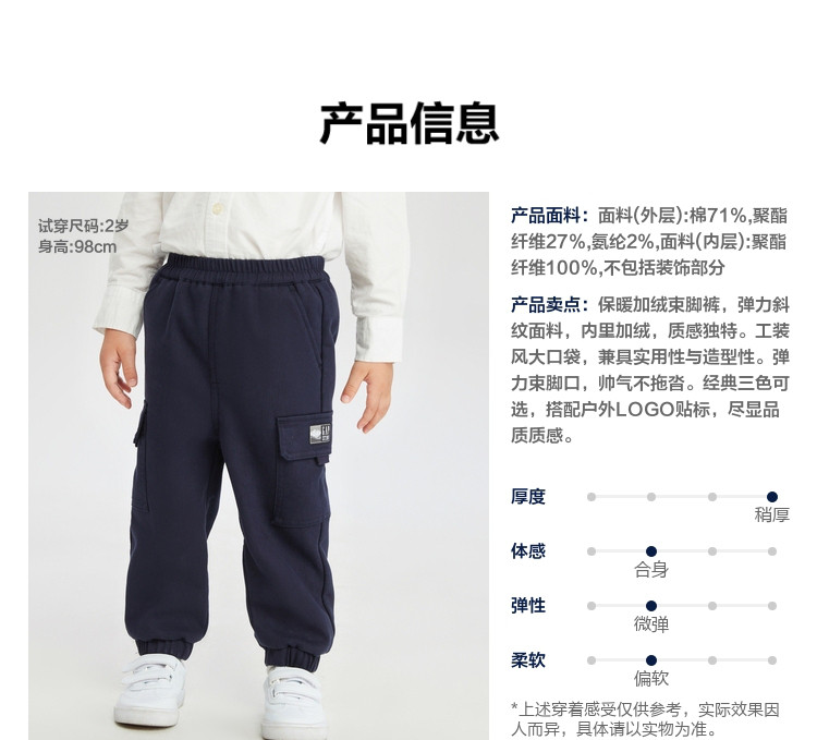 商品名称:Gap男幼童春秋款加绒保暖工装束脚裤785055儿童装洋气长裤 612506