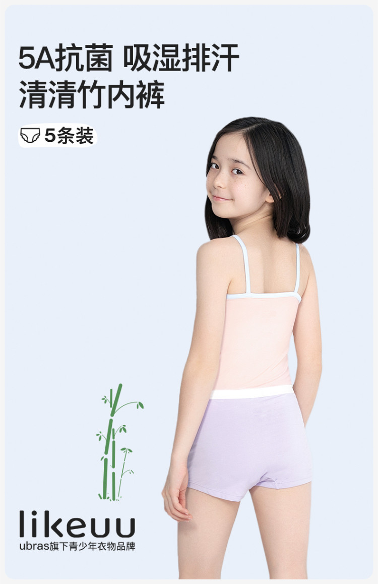 【旗下likeuu】柔软内裤男女童三角四角裤抗菌透气五条装 165056
