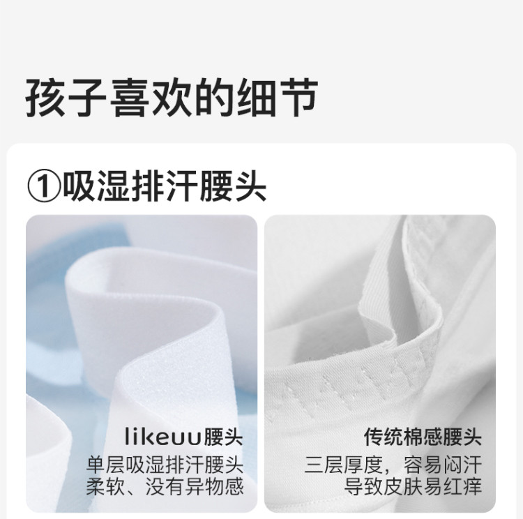 商品名称:【旗下likeuu】柔软内裤男女童三角四角裤抗菌透气五条装 165056