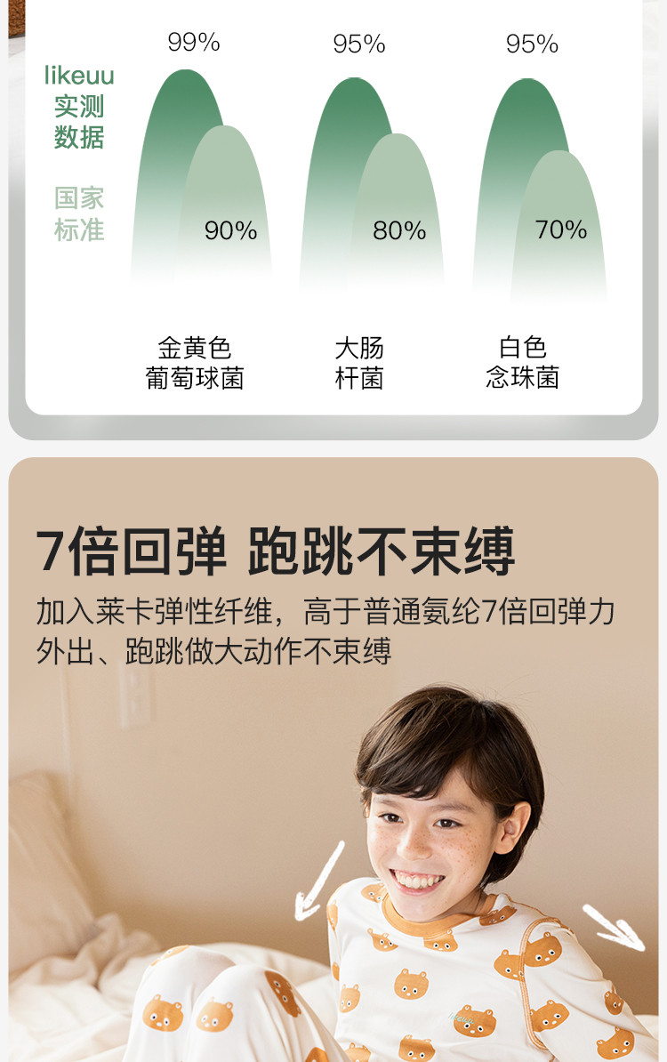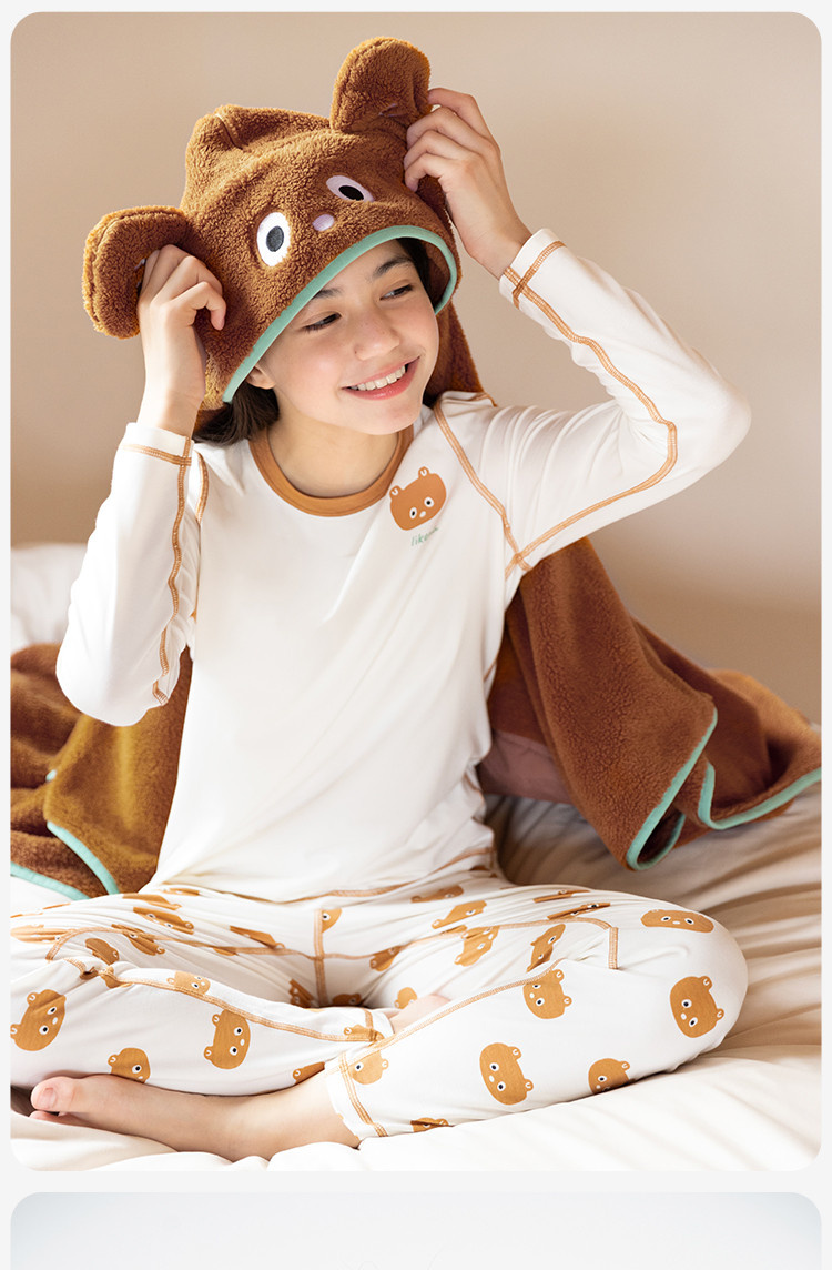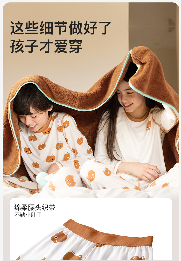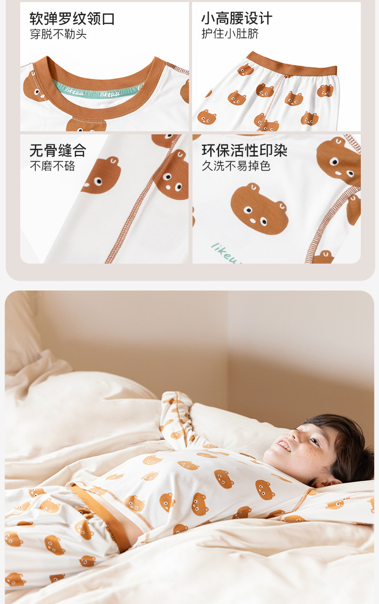商品名称:儿童秋衣秋裤套装打底男女大童好奇小熊轻薄睡衣秋衣家居服 349376