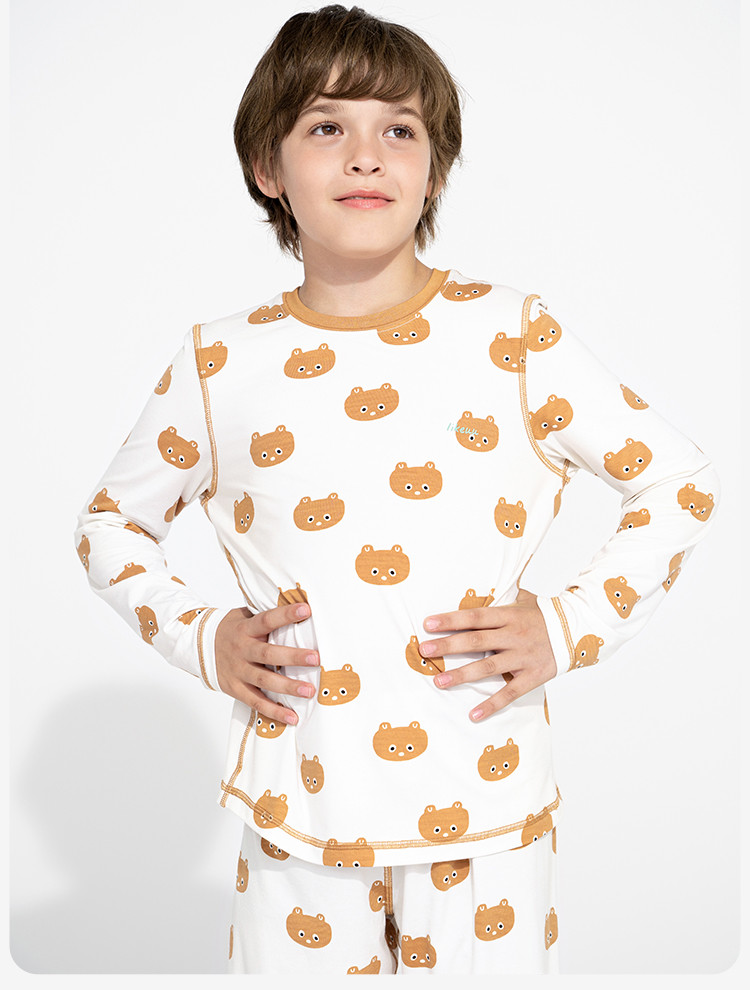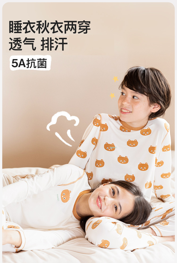 儿童秋衣秋裤套装打底男女大童好奇小熊轻薄睡衣秋衣家居服 349376