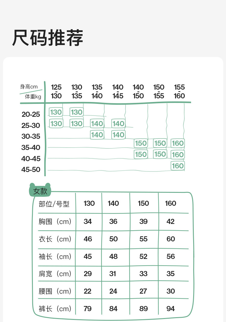 | 140 | 50(女)/51(男) | 30(女)/31(男) | 135-145 | 24(女)/24(男) | 81(女)/84(男) | 48(女)/48(男) | 35(女)/36(男) | 1/1 |