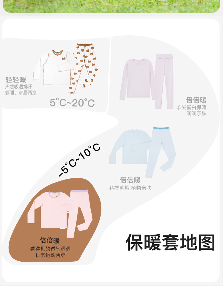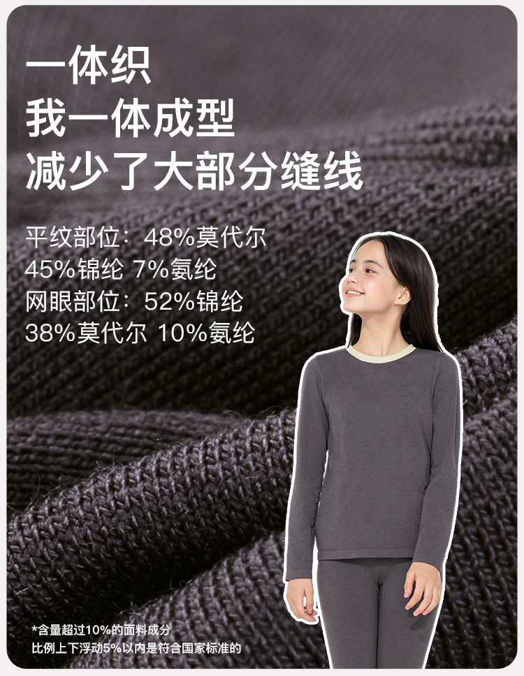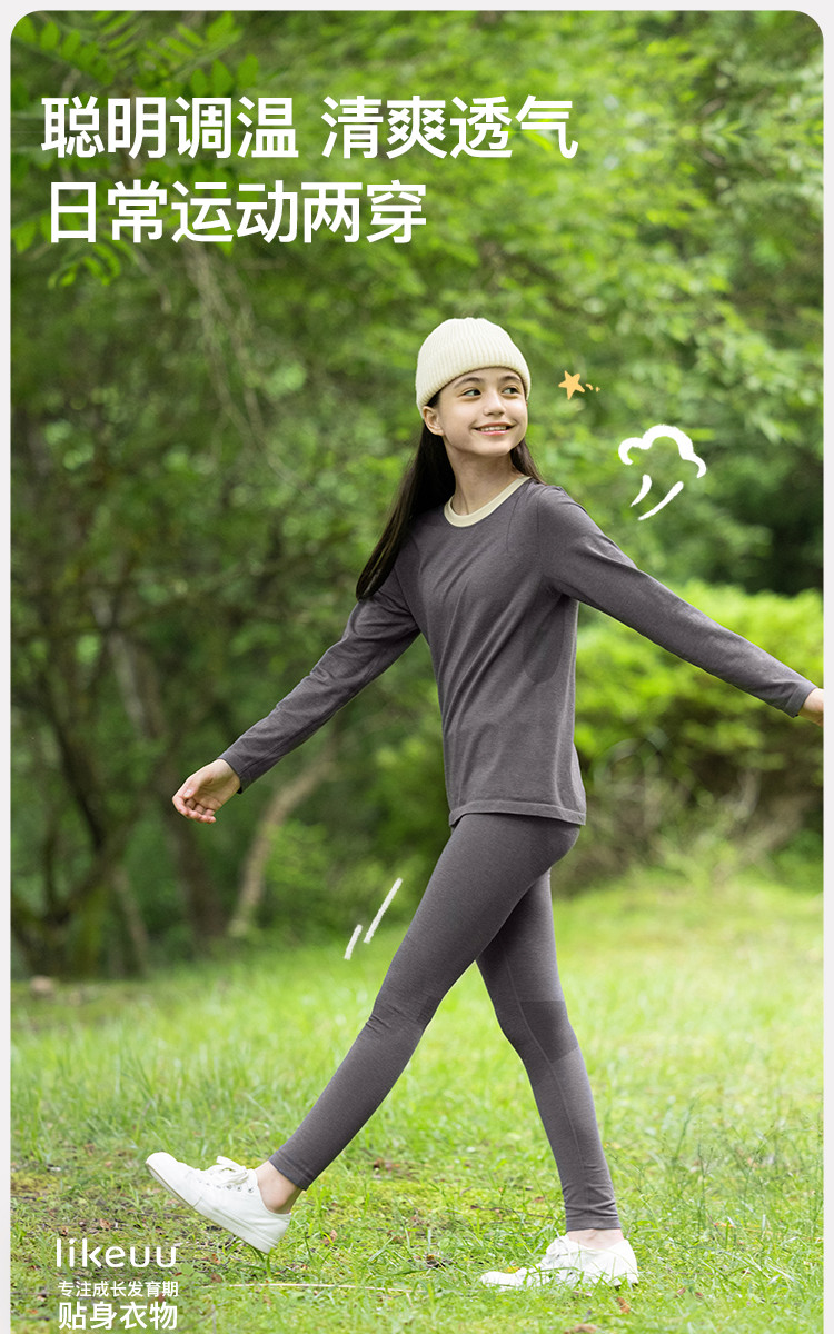 旗下likeuu【贴身一体织】暖氧吧倍暖男女儿童保暖内衣套装 217984