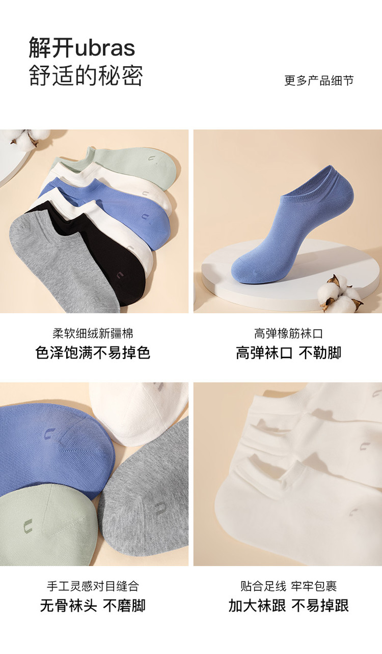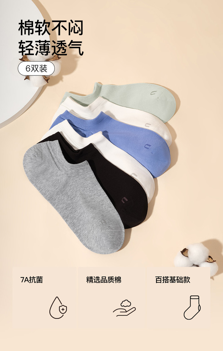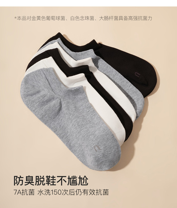商品名称:【7A抗菌】防臭透气男士船袜不掉跟防滑舒适袜子6双装夏季薄款 733952