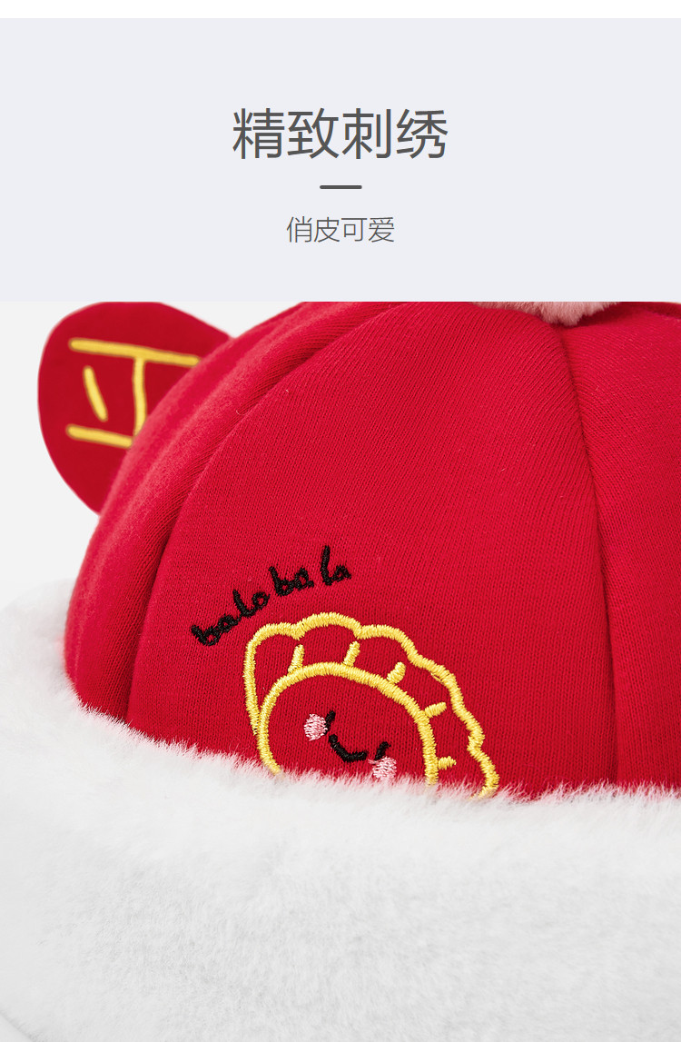 商品名称:宝宝帽子龙年男童女童保暖帽加绒防风本命年红色喜庆立体萌趣造型 545989
