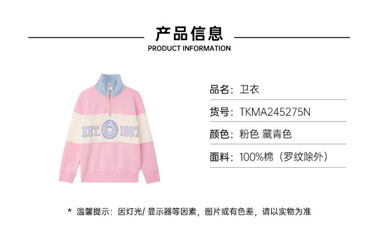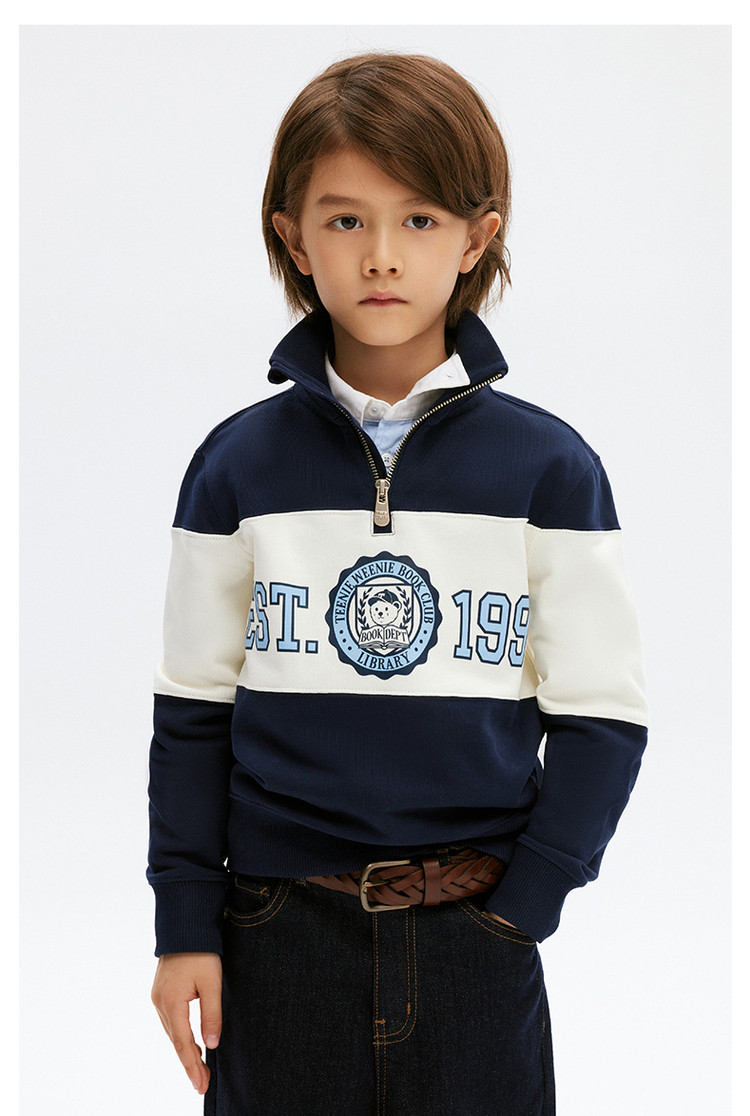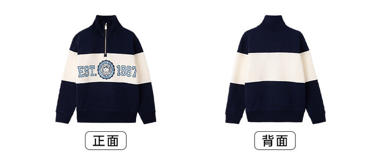 商品名称:小熊童装春季男女童拉链立领撞色卫衣 841857