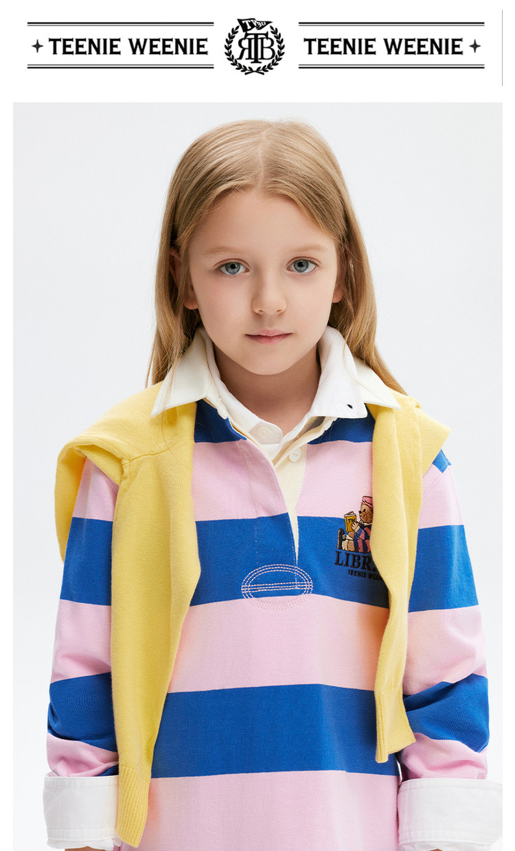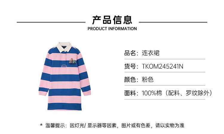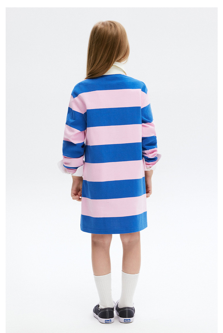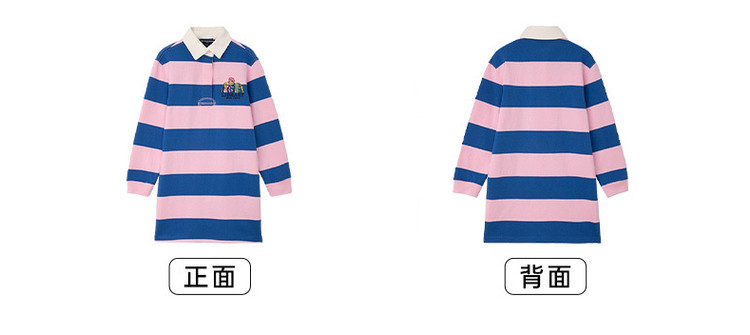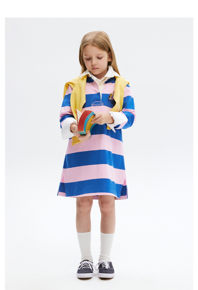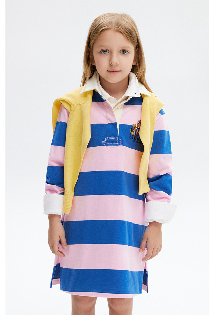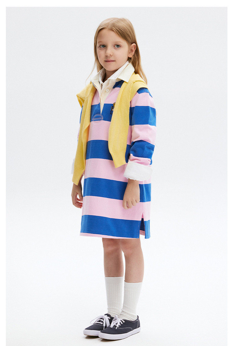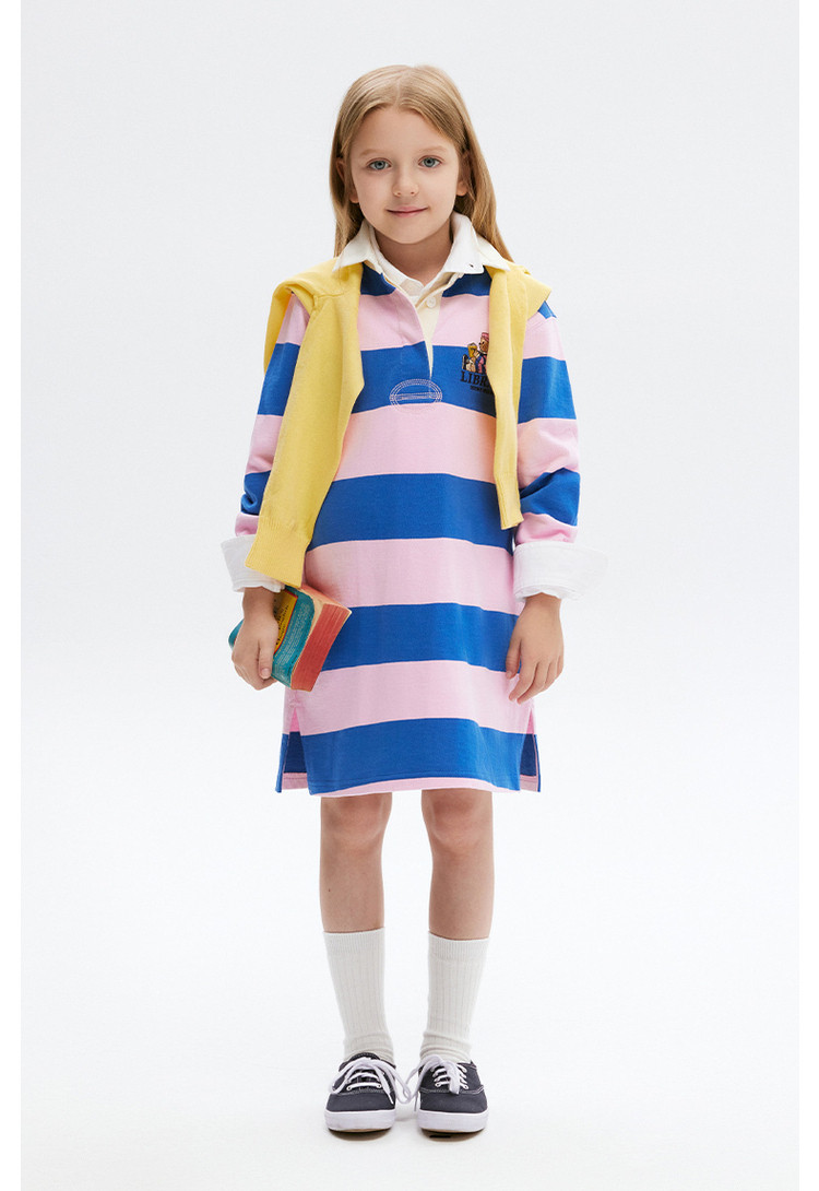 商品名称:小熊童装秋季款女童POLO领条纹长袖连衣裙 574657