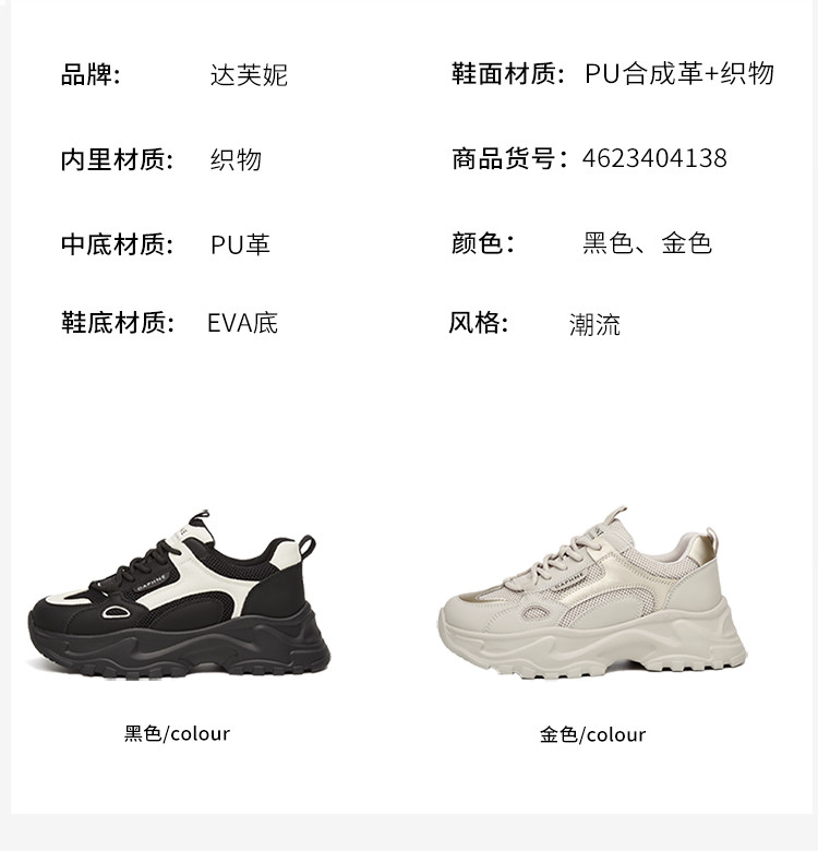 商品名称:【秒增4.8】夏季复古休闲鞋运动鞋老爹鞋板鞋厚底德训鞋女鞋 644567
