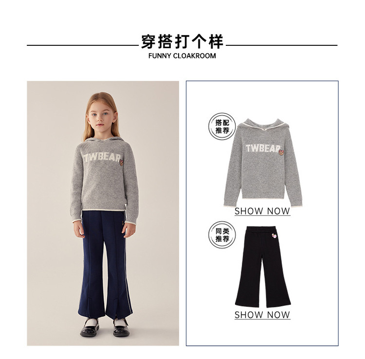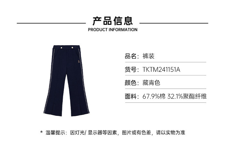 商品名称:小熊童装春款女童侧边开衩微喇裤 165761