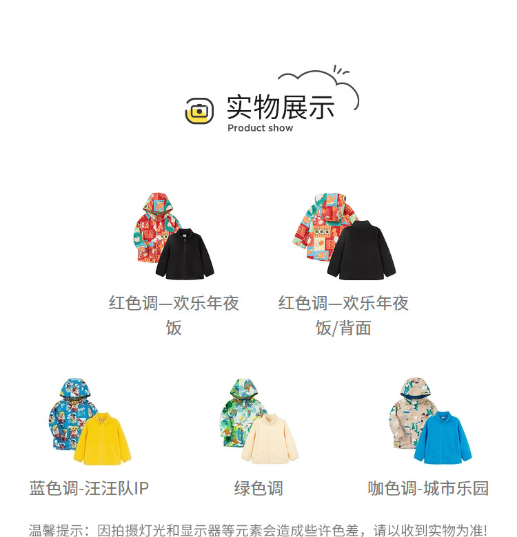 商品名称:一衣多穿三防两件套儿童外套男童春秋款小童宝宝连帽上衣摇粒绒 392837