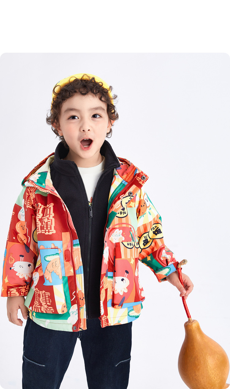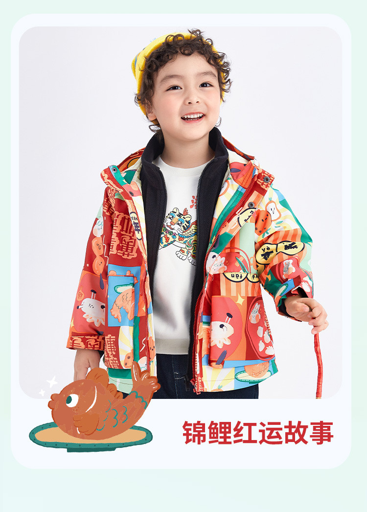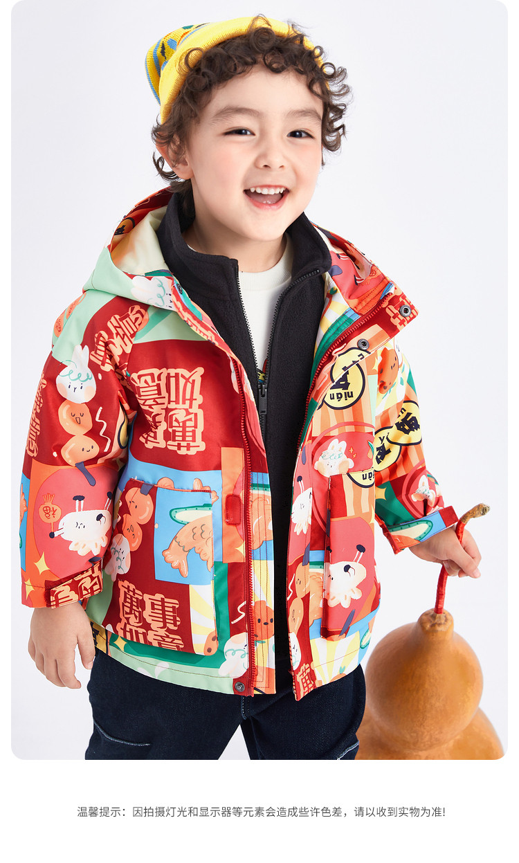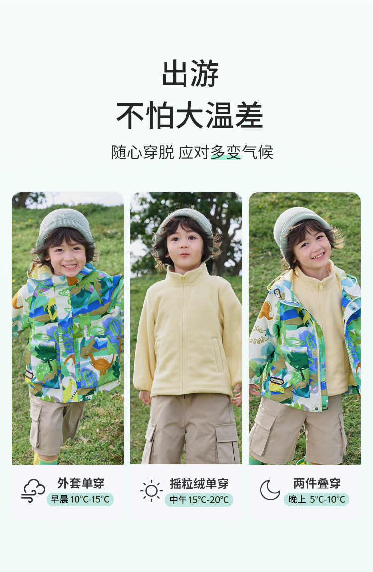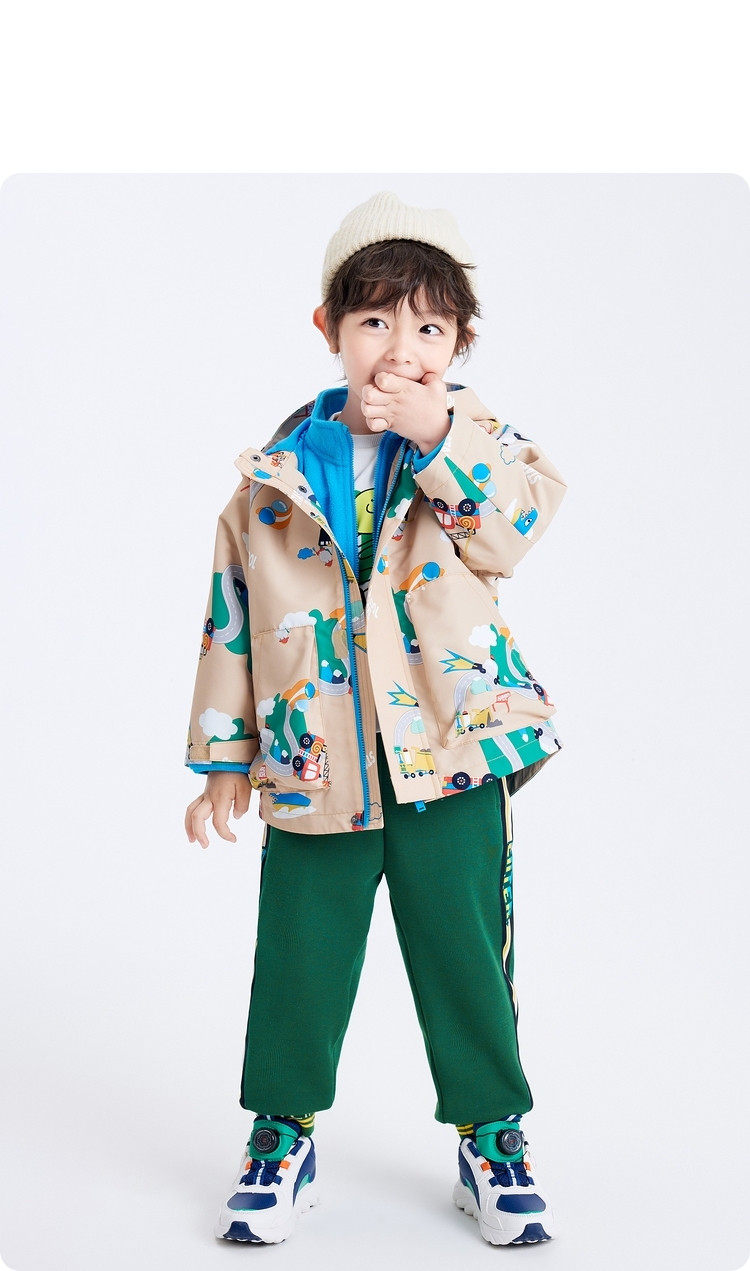 一衣多穿三防两件套儿童外套男童春秋款小童宝宝连帽上衣摇粒绒 392837