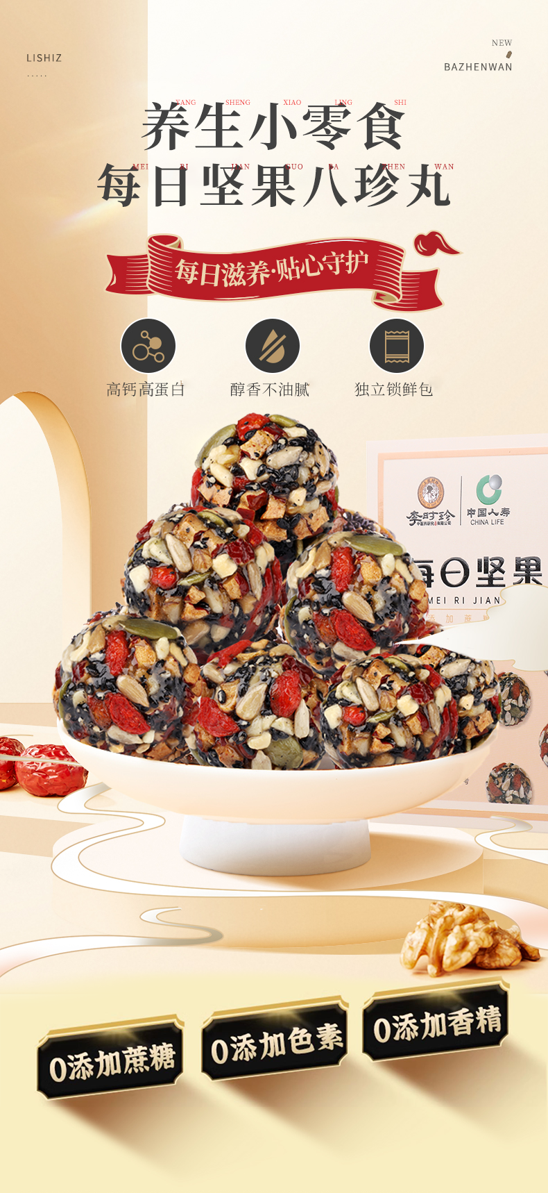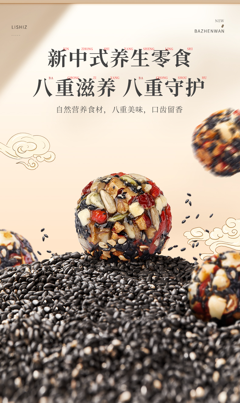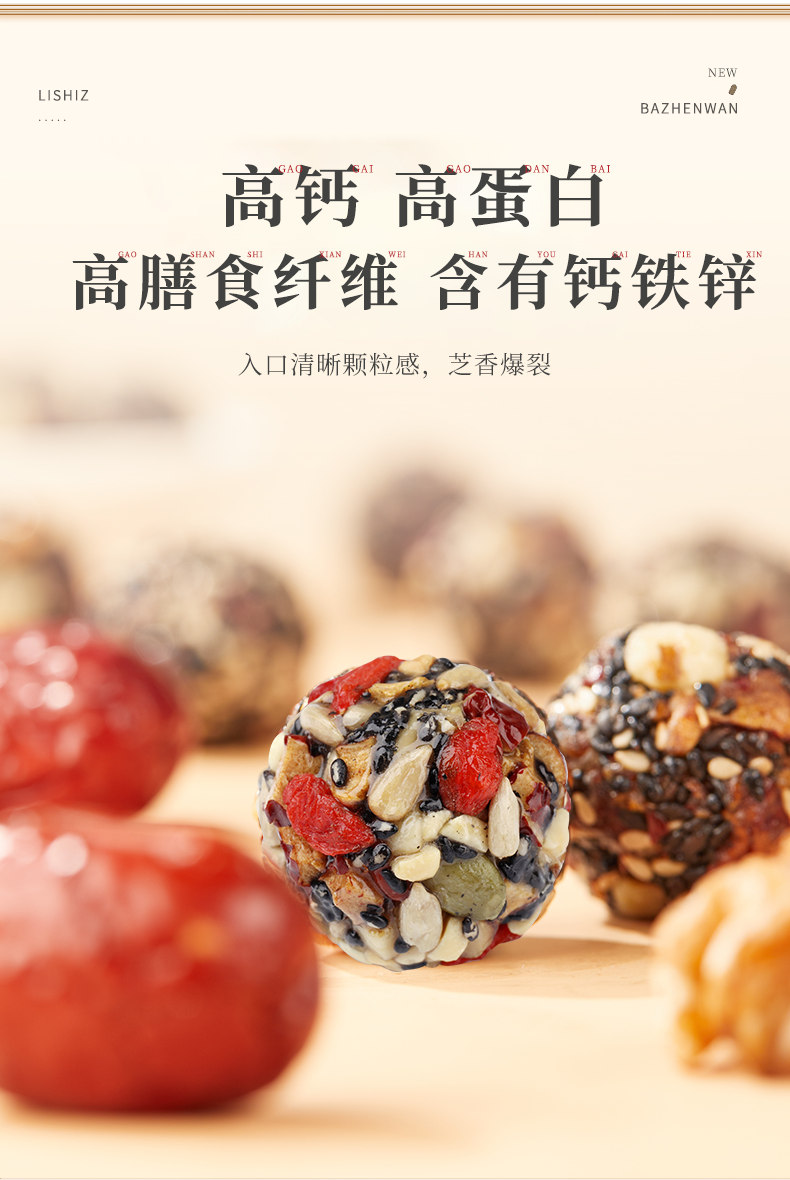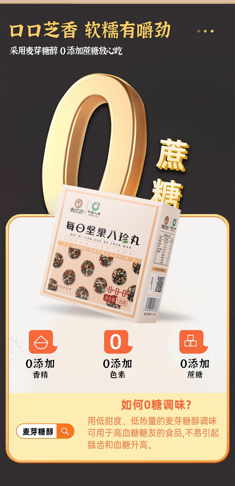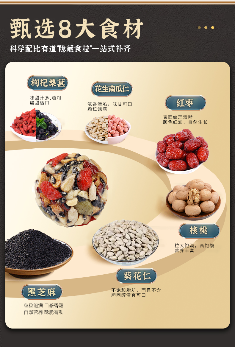 商品名称:6盒每日坚果无糖高钙核桃枸杞黑芝麻丸八珍丸儿童老人零食孕妇糕点坚果滋补小零食