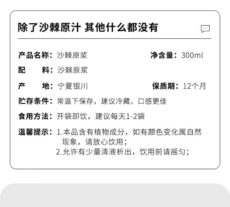 商品名称:2盒沙棘原浆维生素C果汁原浆原汁鲜果汁生榨滋补养生补元气
