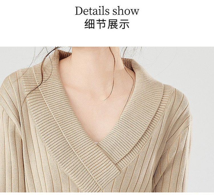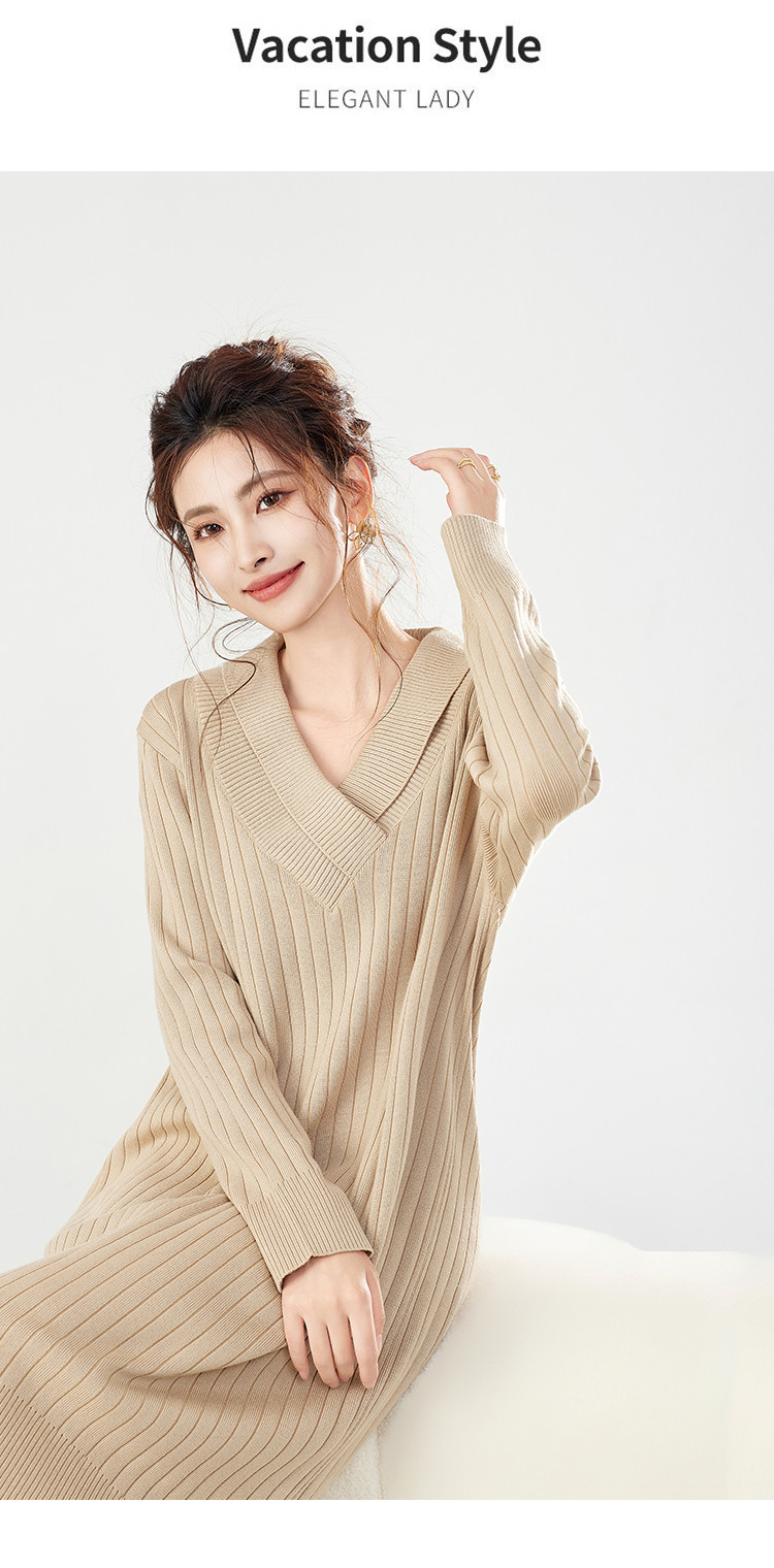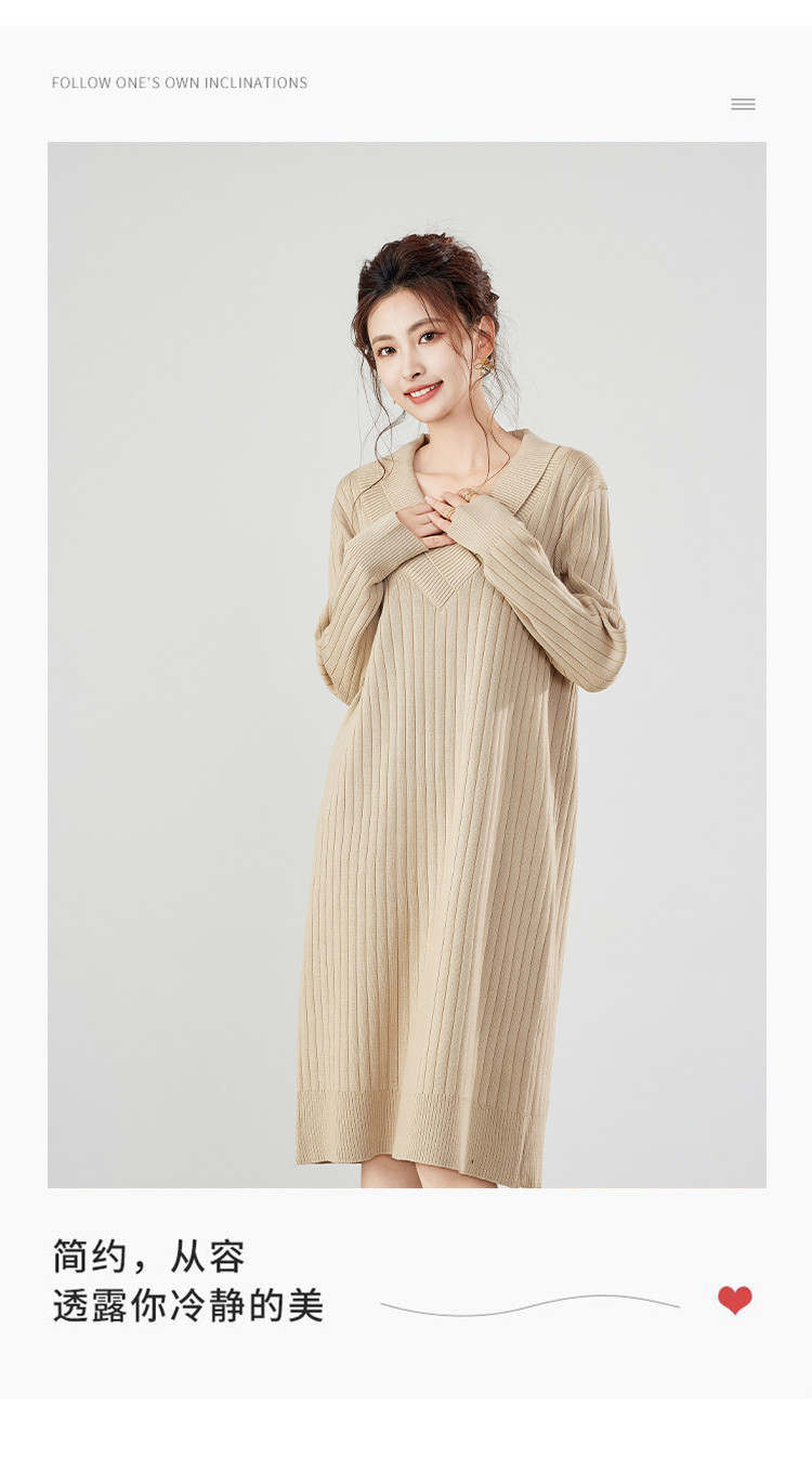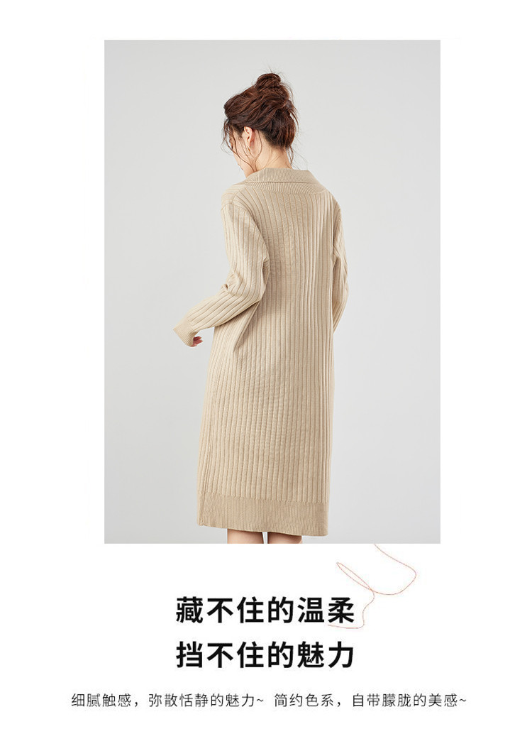 商品名称:【配大衣】秋冬时尚V领长袖过膝打底针织连衣裙女 458911