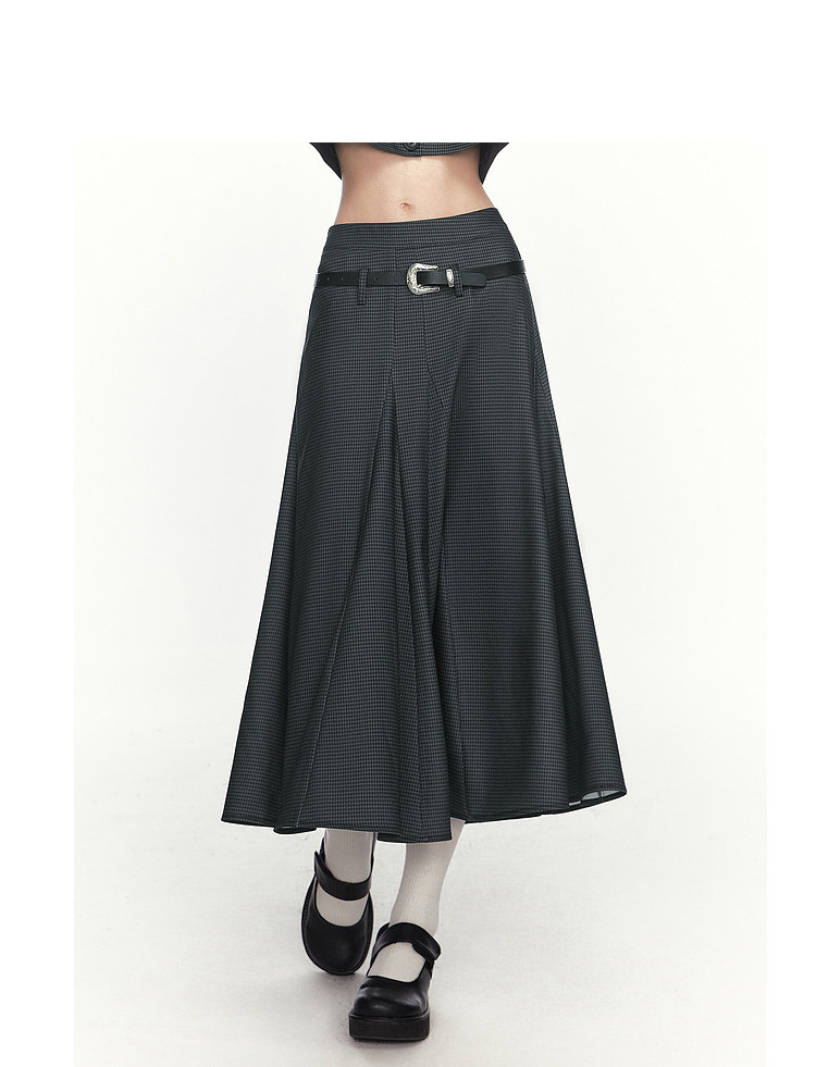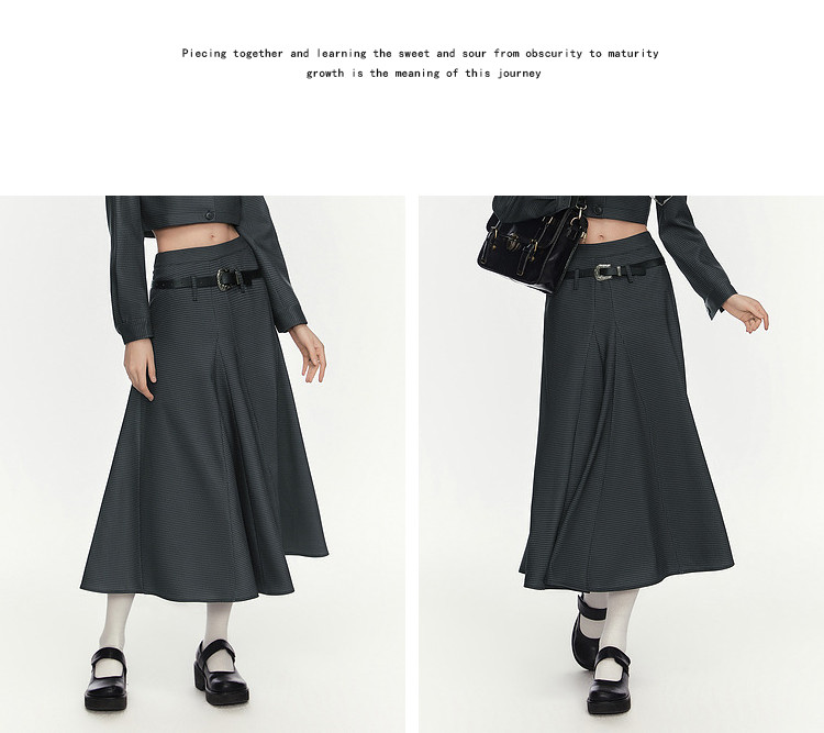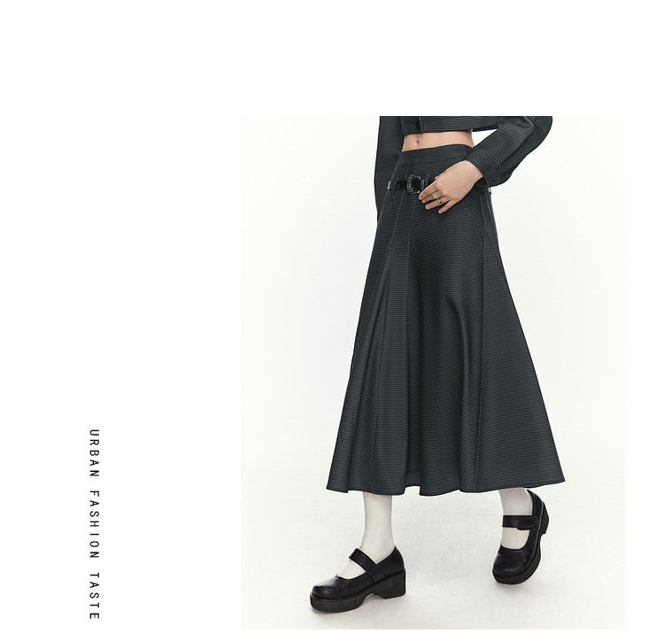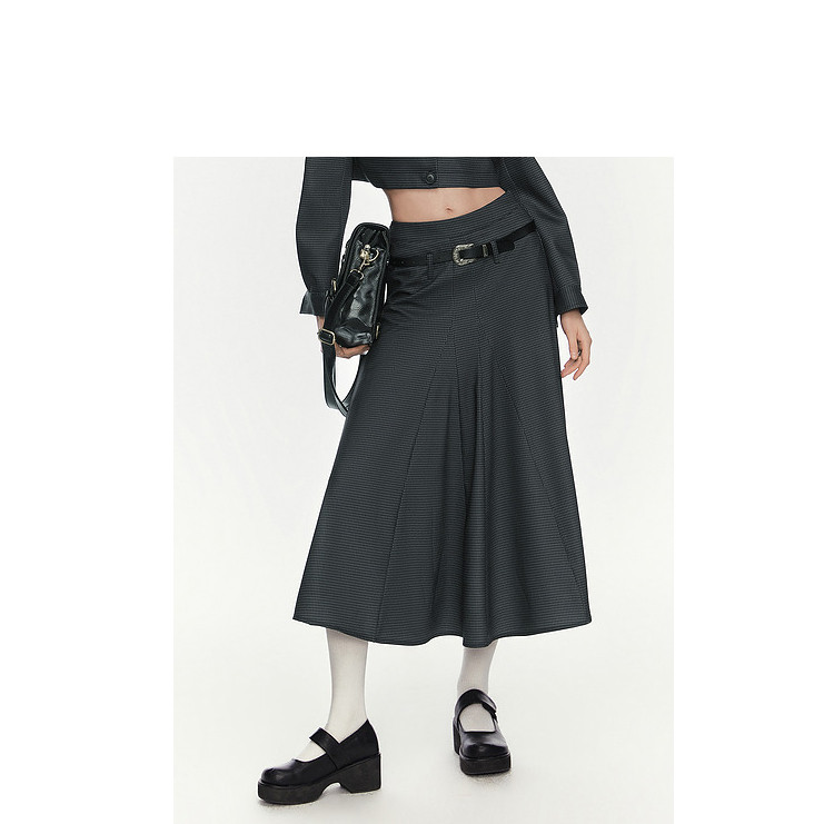 【2024秋季】复古坠感大廓形半身裙女工装风格纹半身长裙 993748
