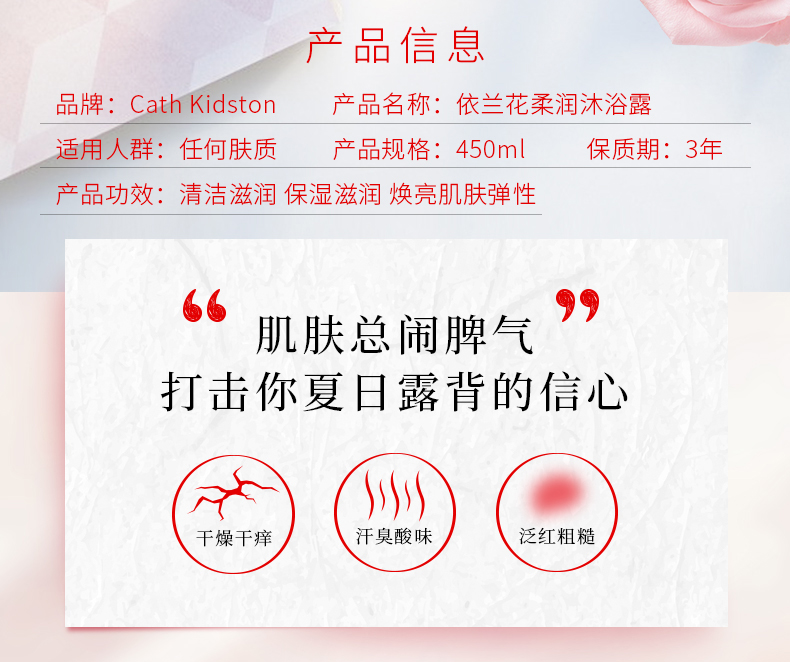 商品名称:Cath Kidston/凯茜·琦丝敦依兰花柔润沐浴露450ml/瓶