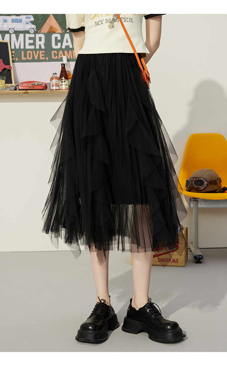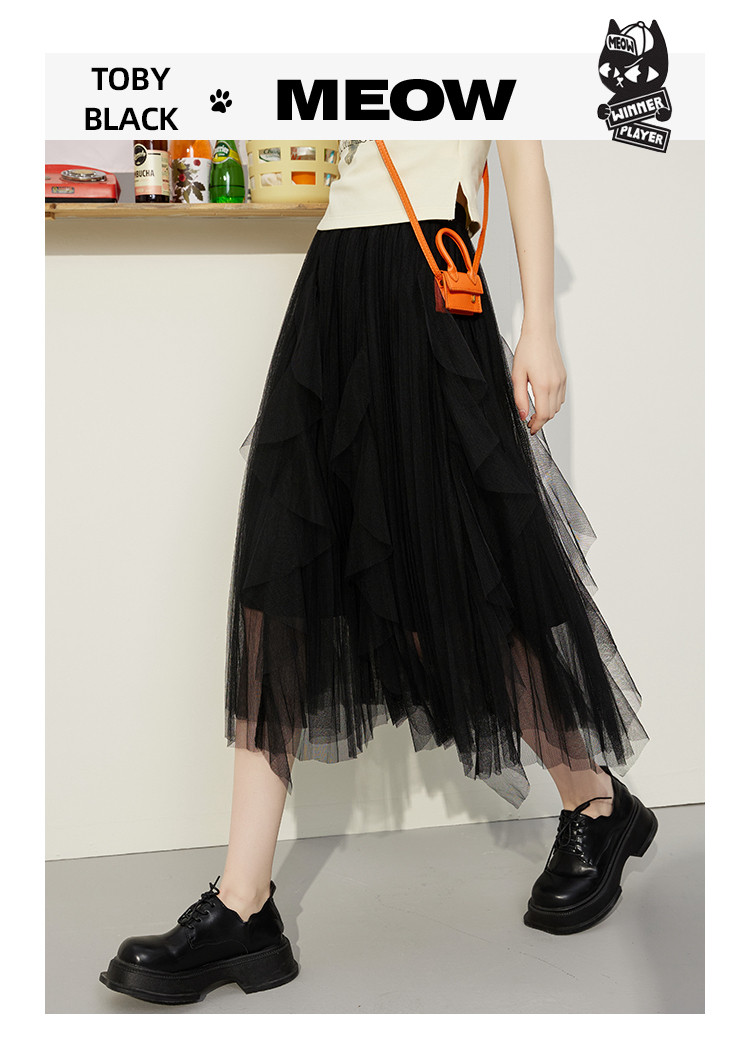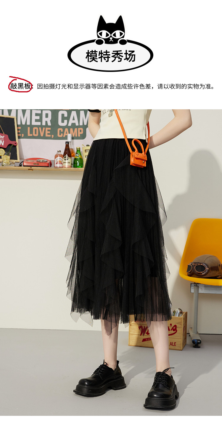 商品名称:【网纱半身裙】春季显瘦遮跨中长款不规则半截裙 771677