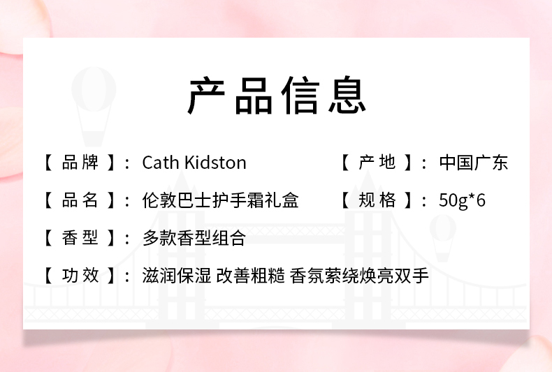 商品名称:Cath Kidston凯茜·琦丝敦 伦敦巴士护手霜礼盒 50g*6支