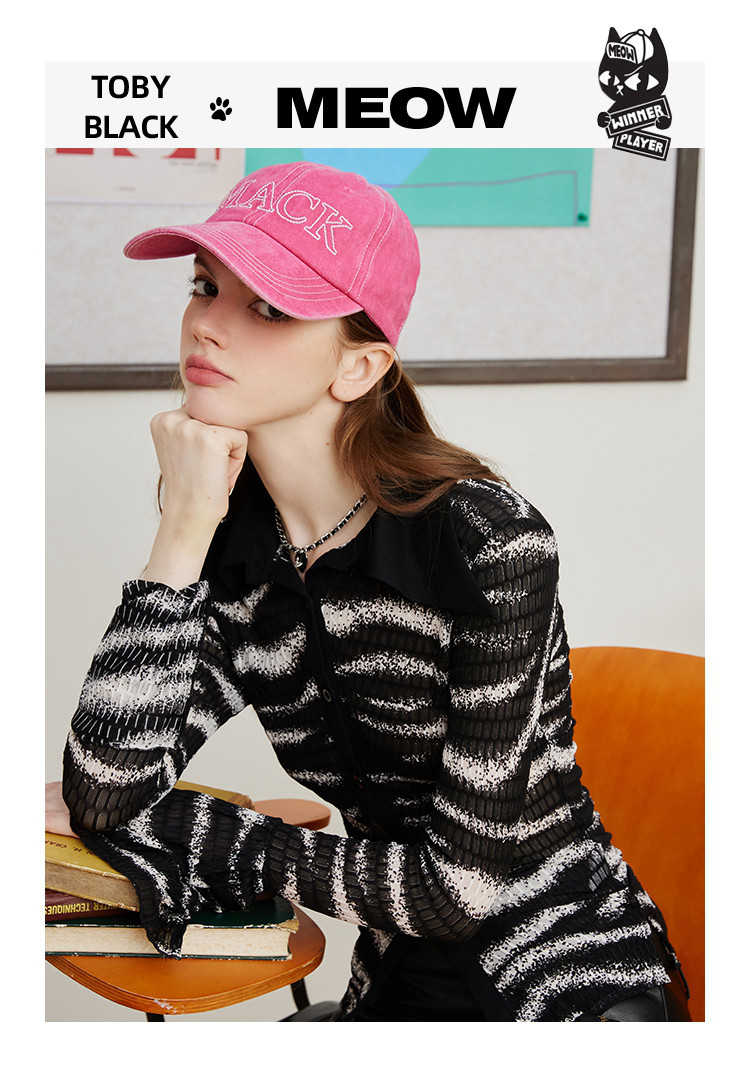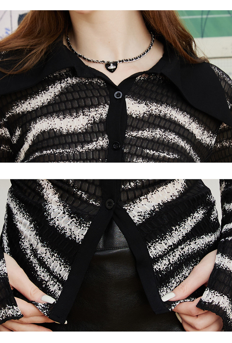 弹力网辣妹显瘦波浪立体衬衣春季修身正肩女式针织衫 373533