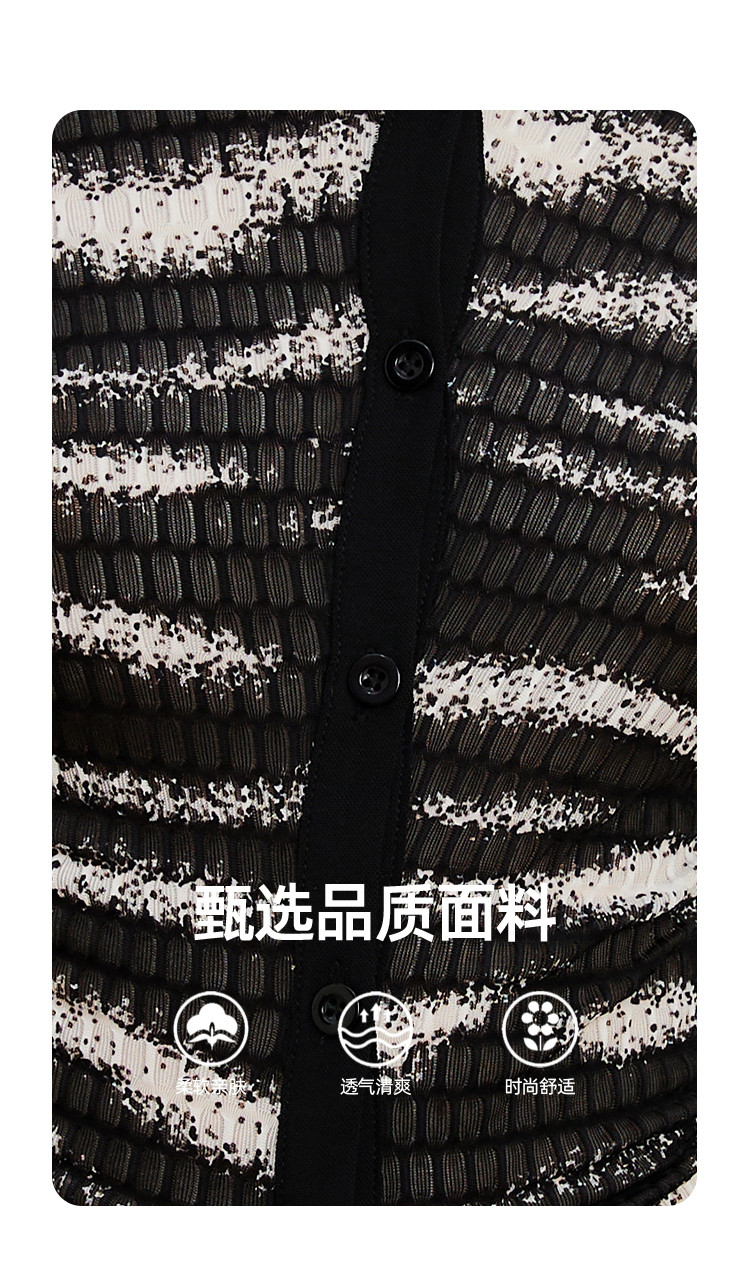 商品名称:弹力网辣妹显瘦波浪立体衬衣春季修身正肩女式针织衫 373533