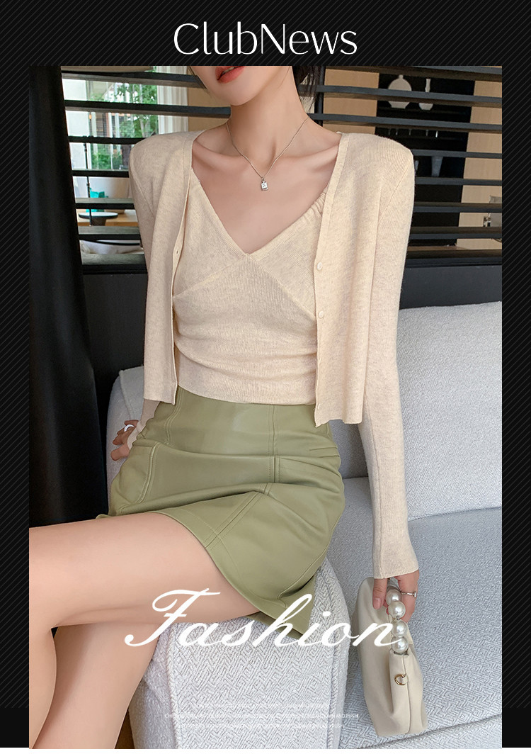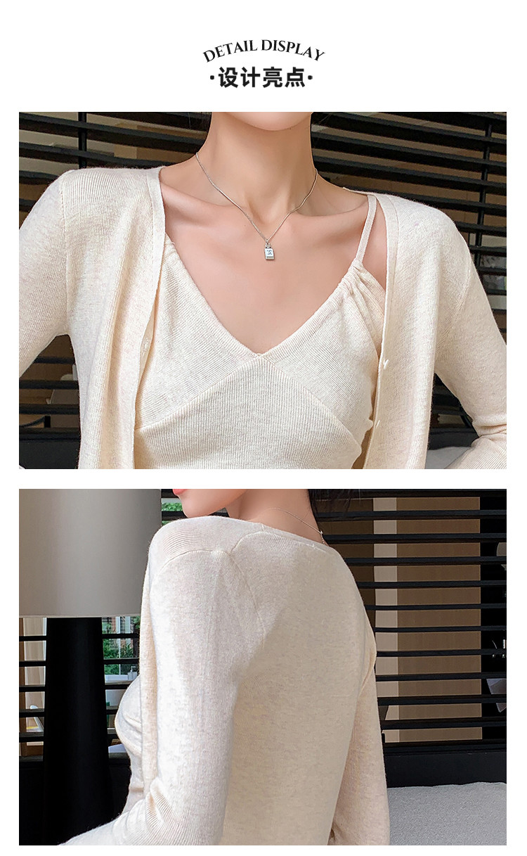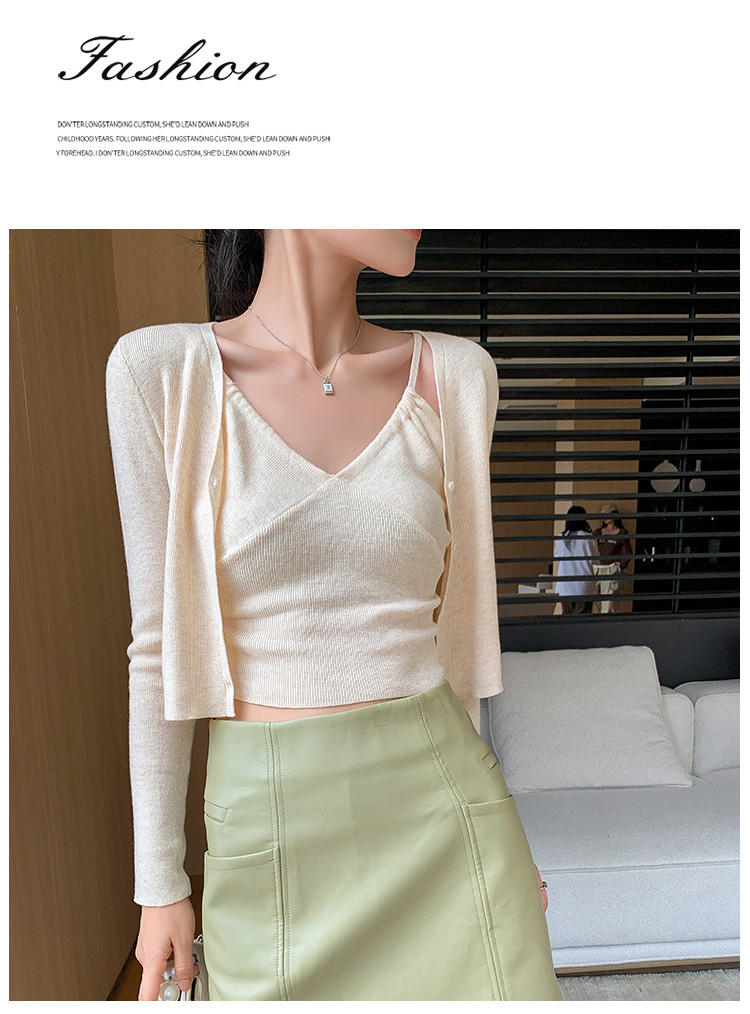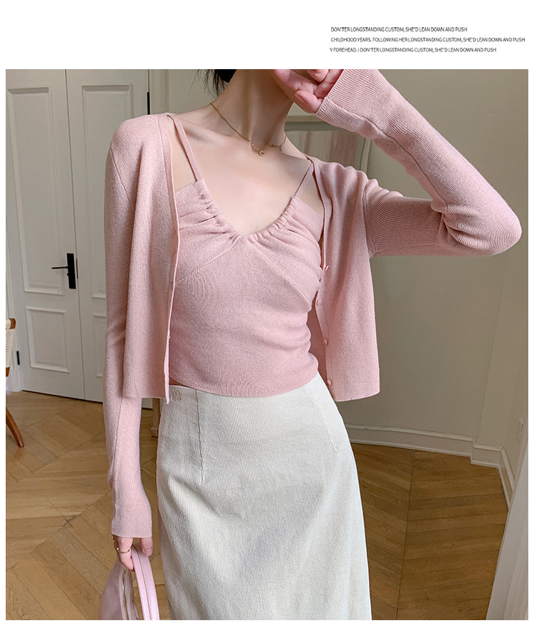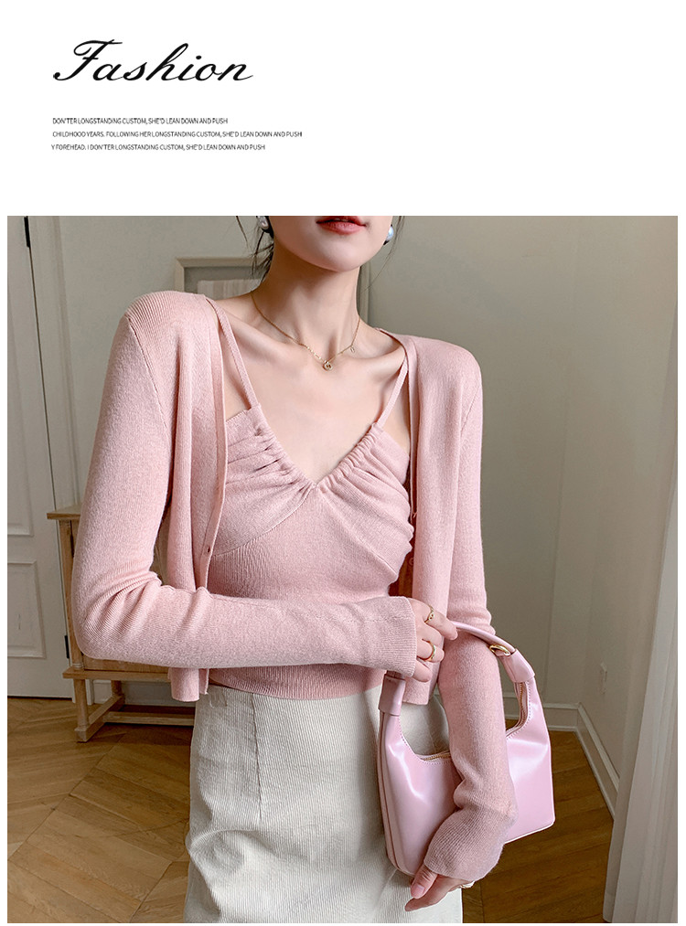 商品名称:甜美纯欲两件套挂脖吊带上衣针织薄开衫辣妹两件套 889027