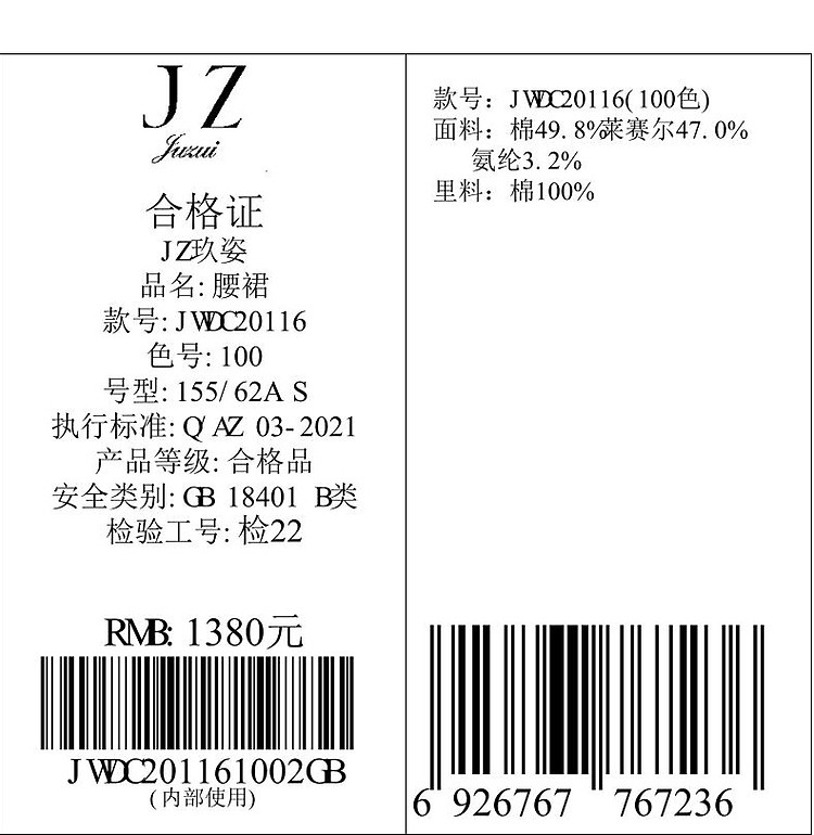 商品名称:商场同款莱赛尔气质浪漫印花半身裙女春季JWDC20116 262220