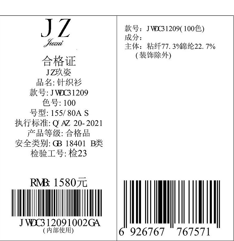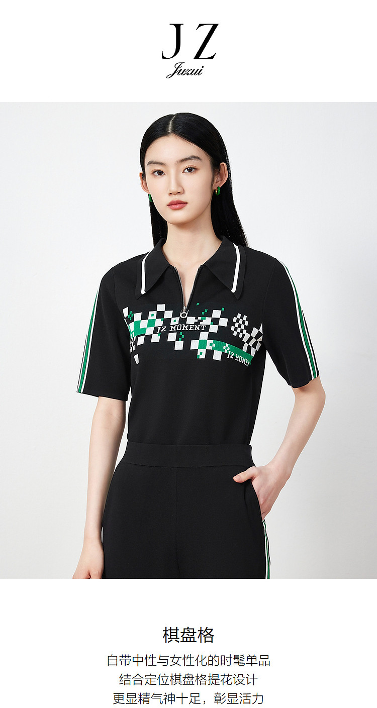 商场同款棋盘格POLO衫针织衫上衣女春季JWDC31209 162892