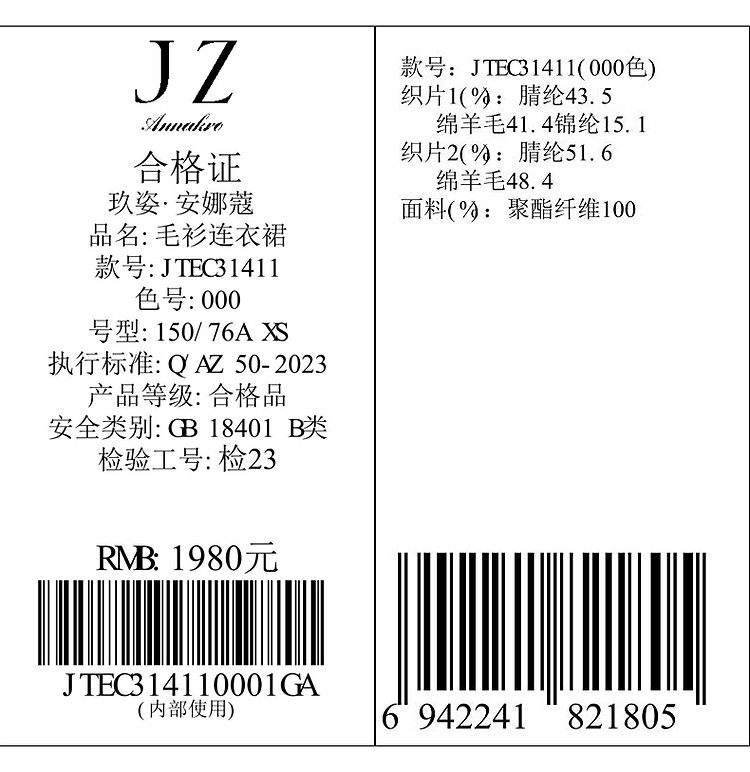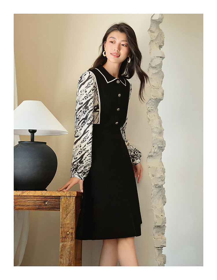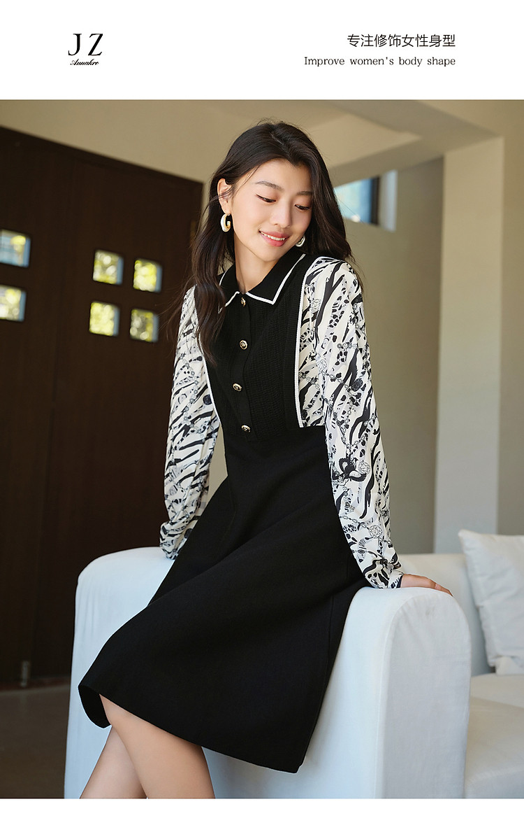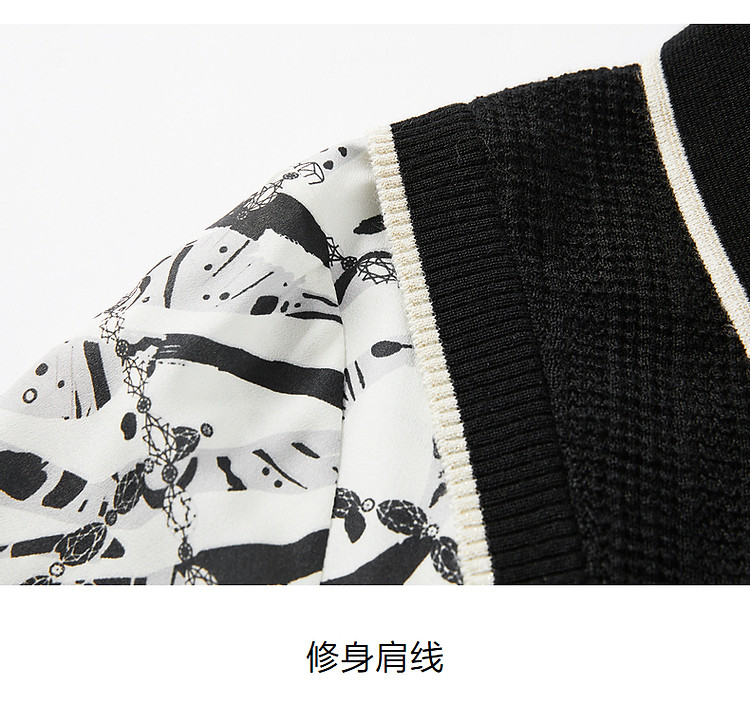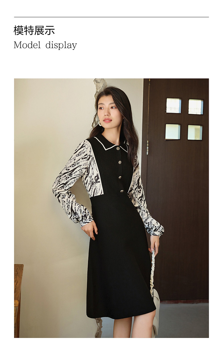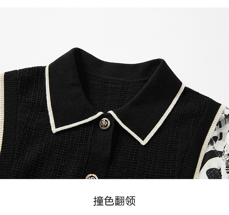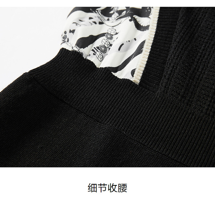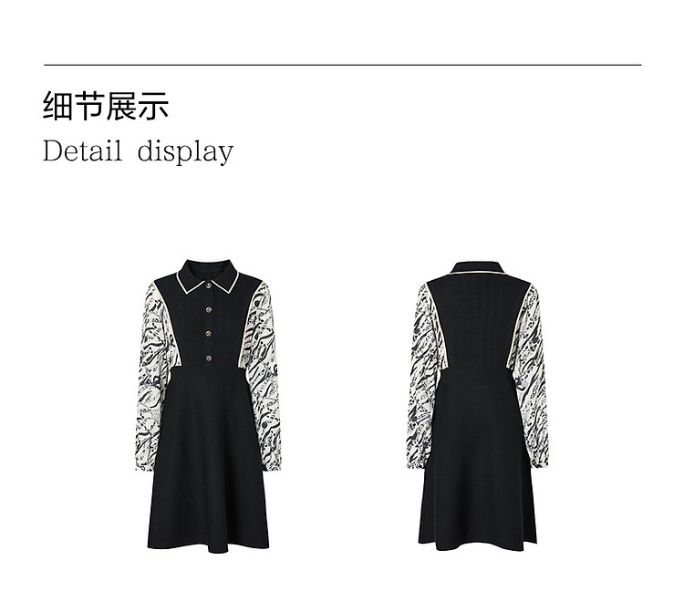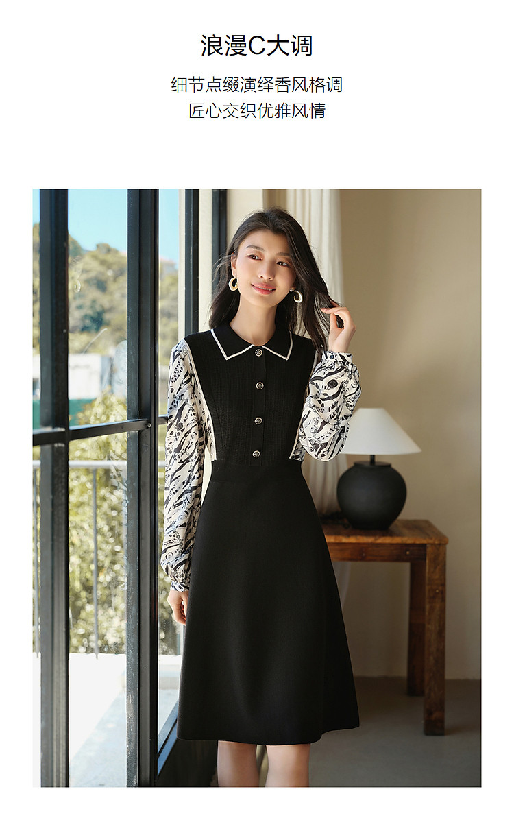 商品名称:玖姿旗下安娜蔻系列优雅印花假两件拼接毛衫连衣裙女春季 685260