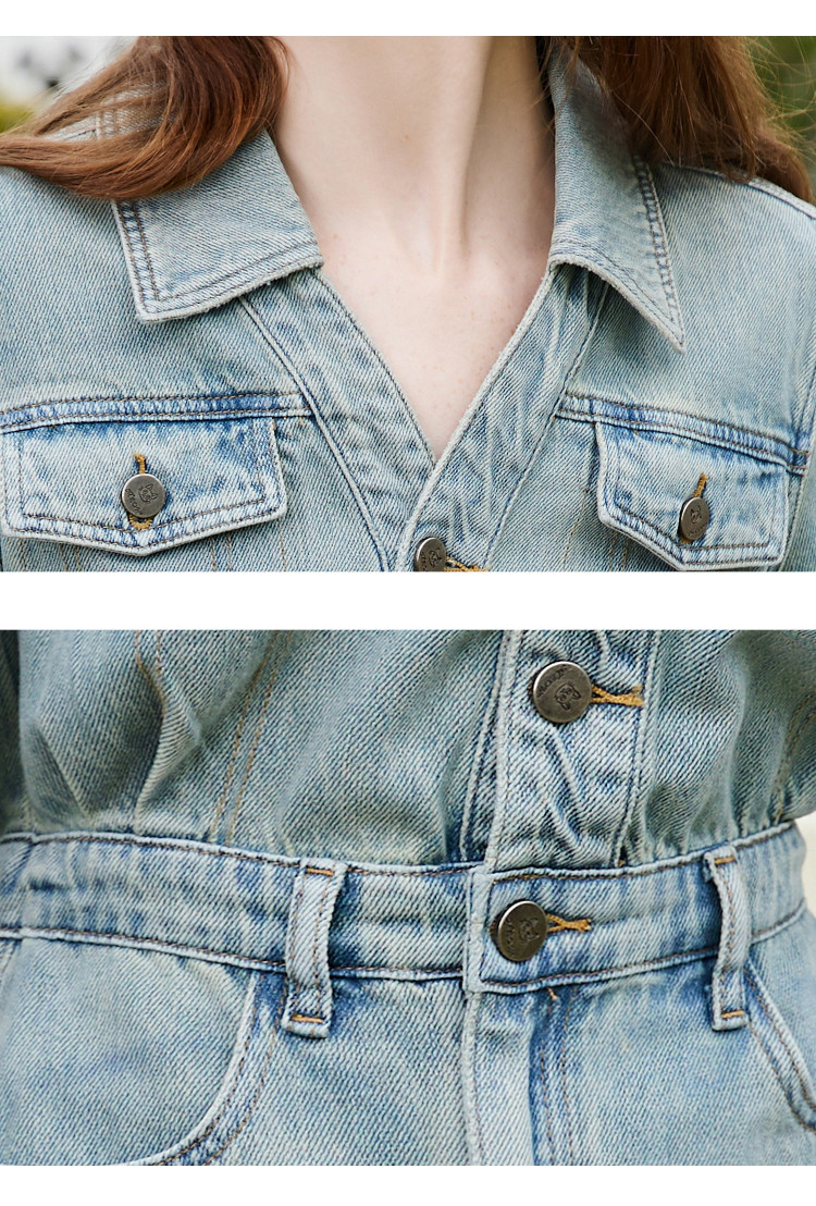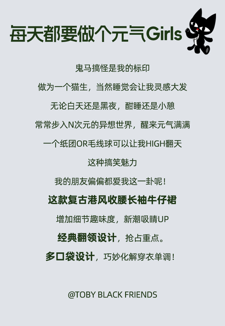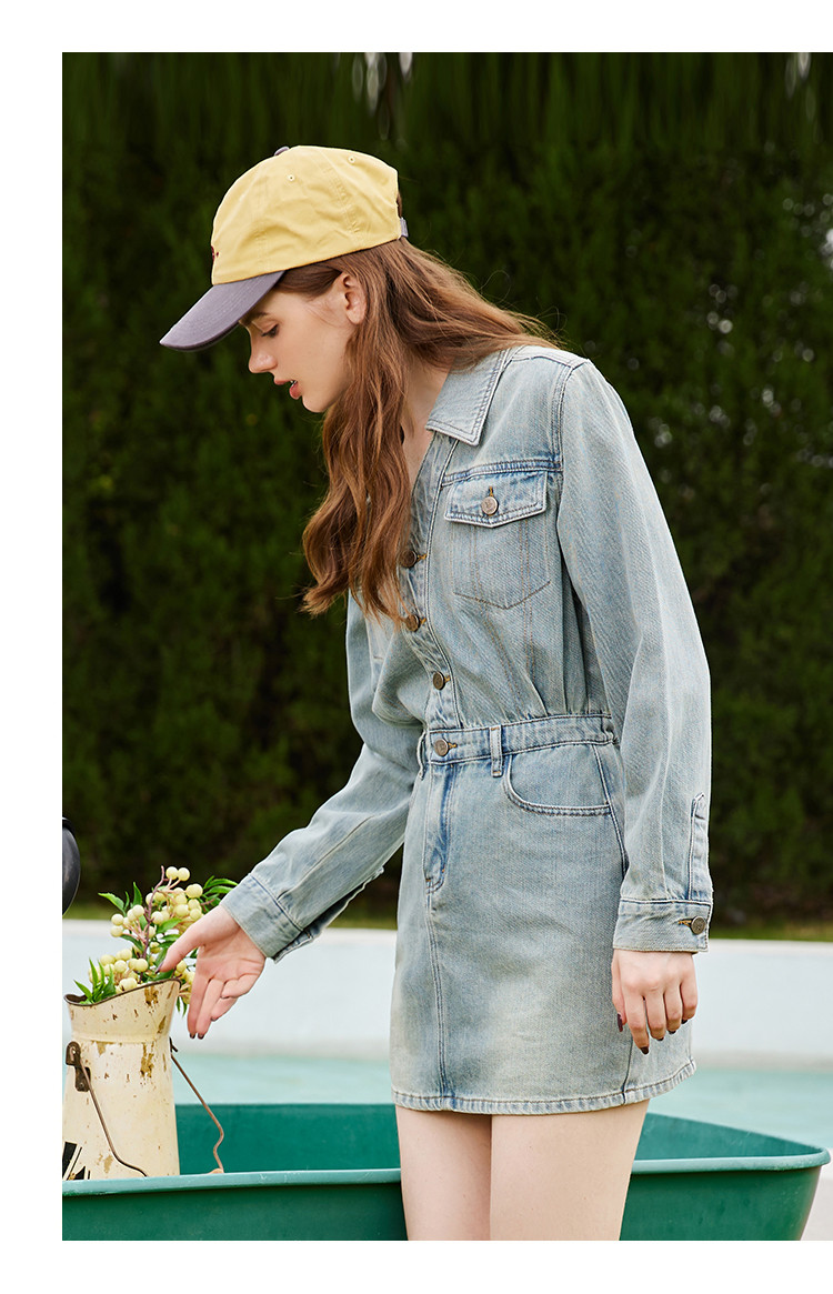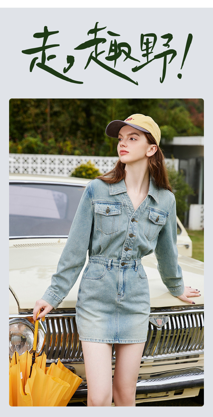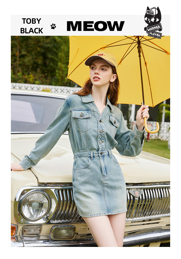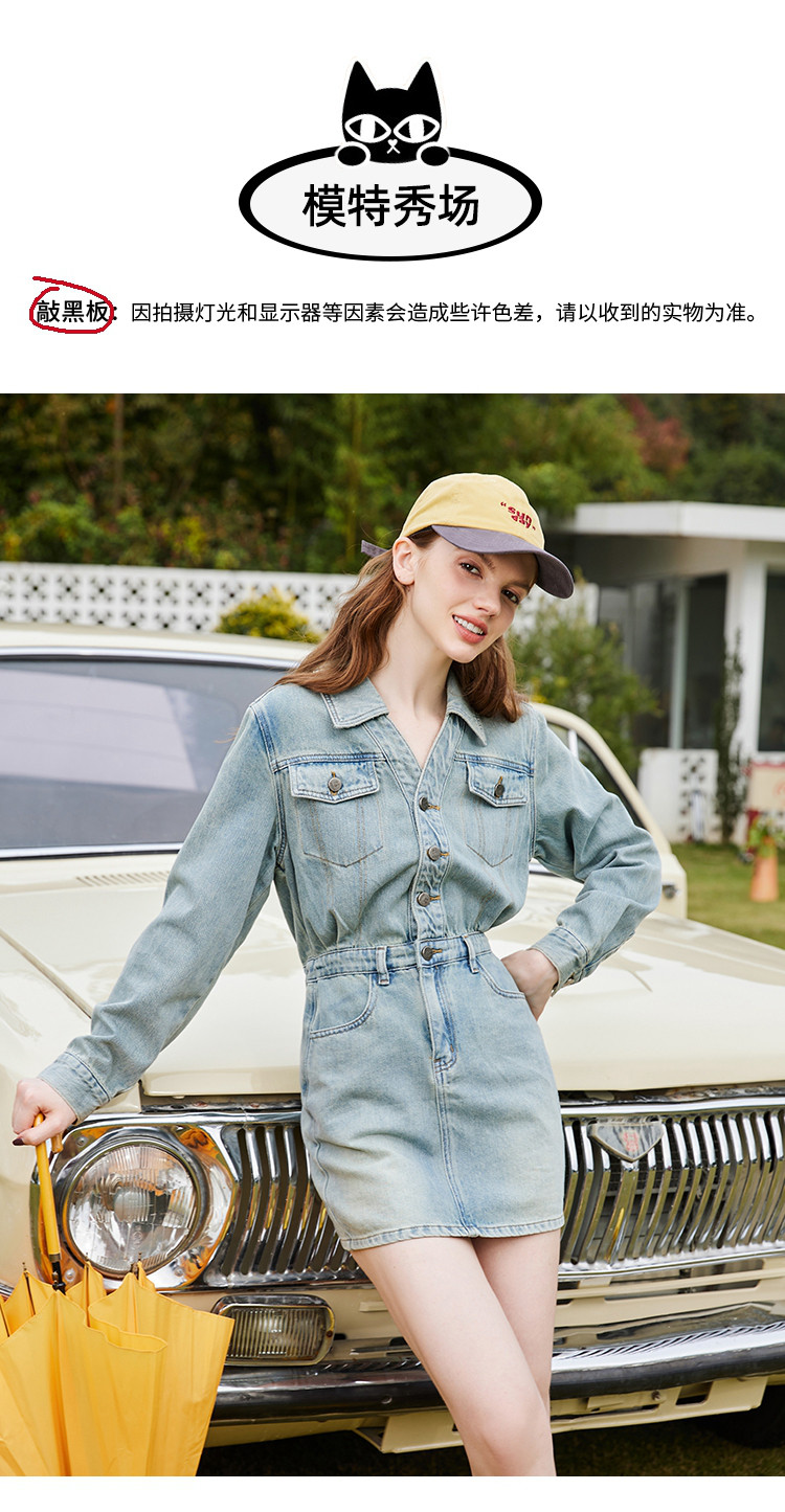 商品名称:甜酷街头风收腰短款牛仔裙春季休闲正肩长袖连衣裙 721565