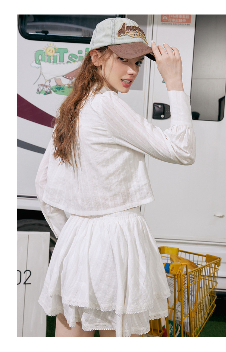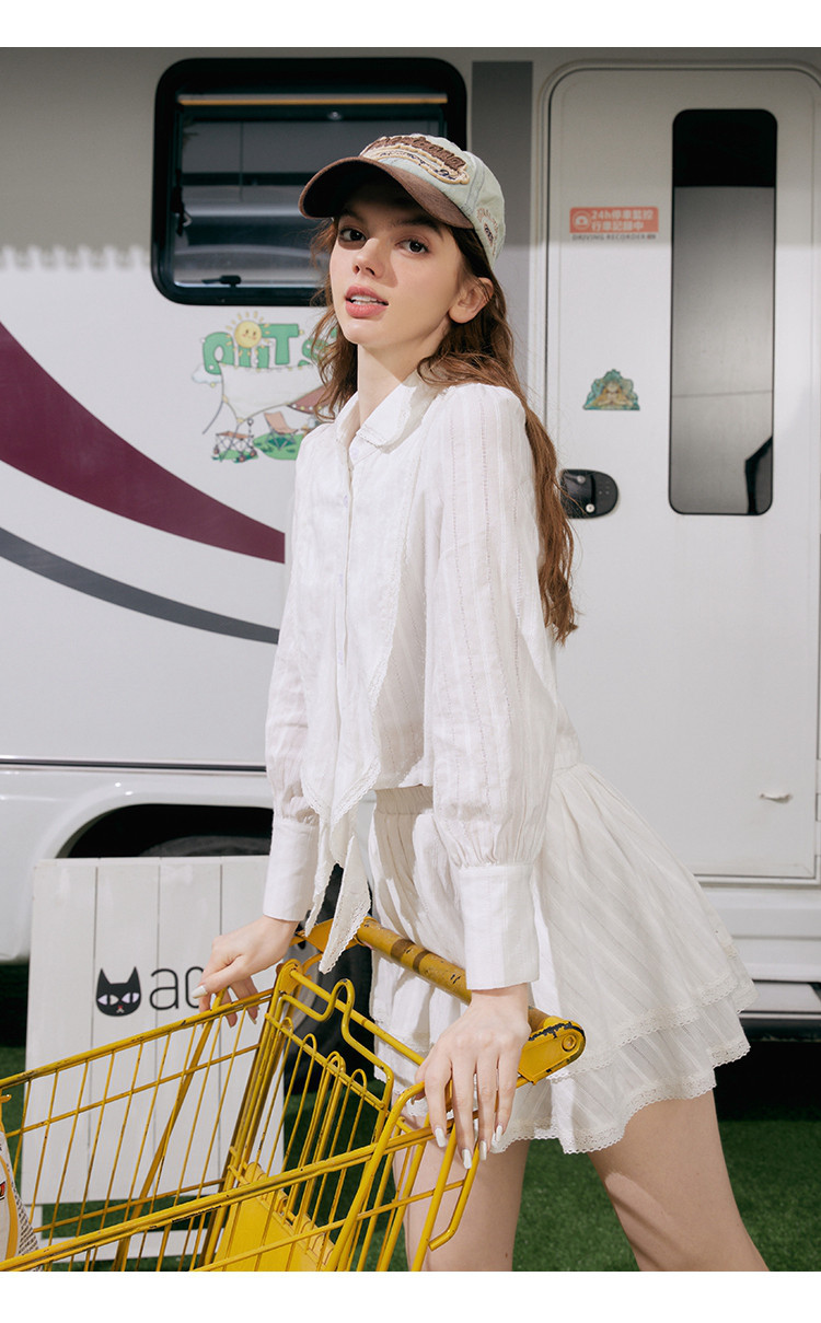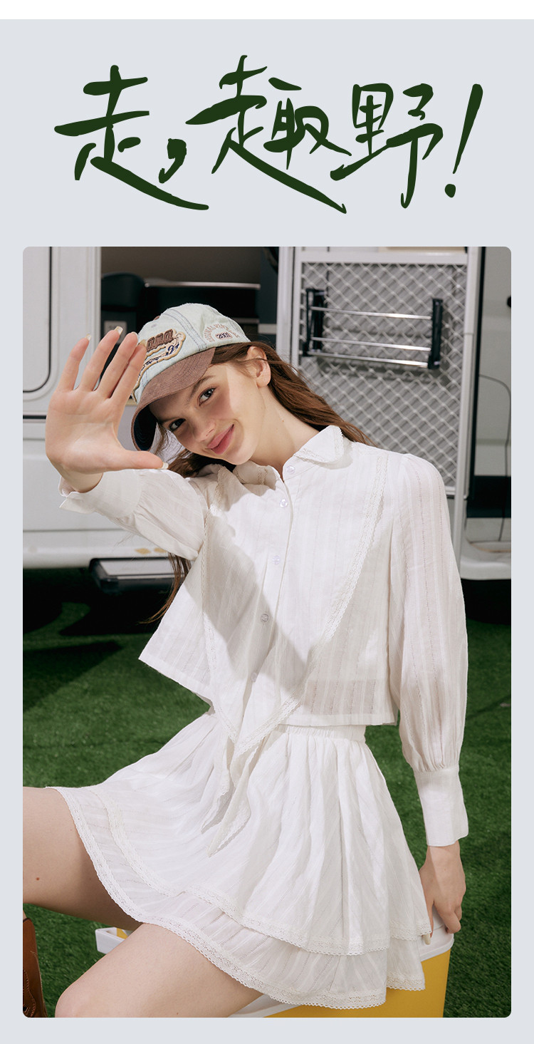 小个子设计感短款蕾丝荷叶边上衣春季休闲女式衬衫 146973