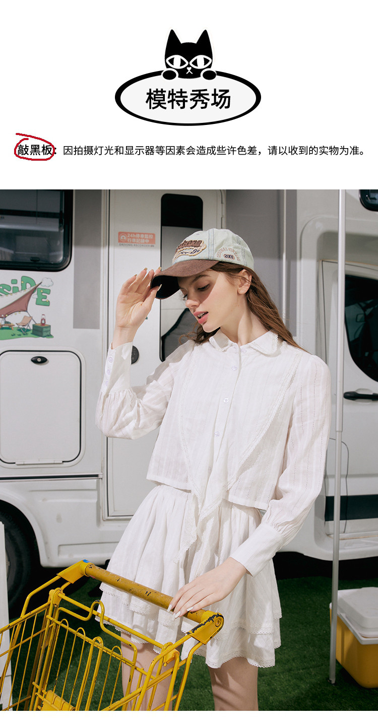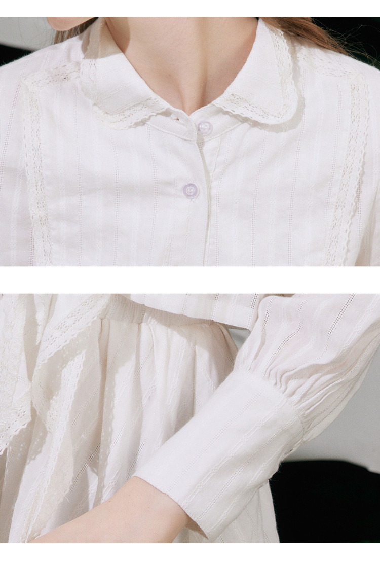 商品名称:小个子设计感短款蕾丝荷叶边上衣春季休闲女式衬衫 146973