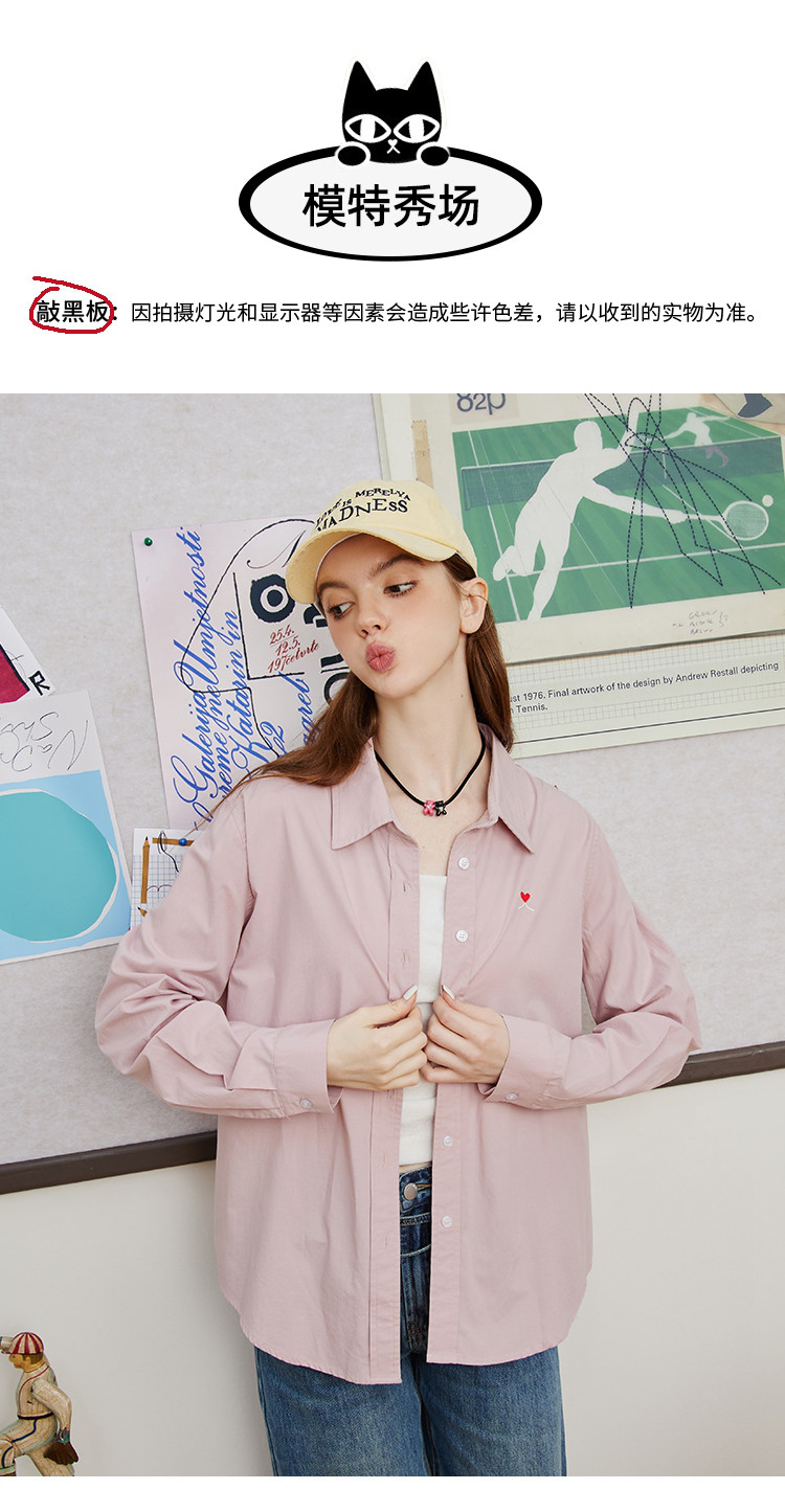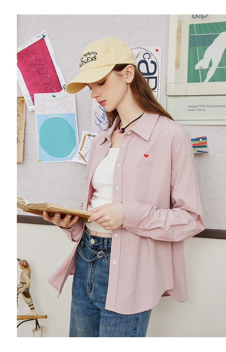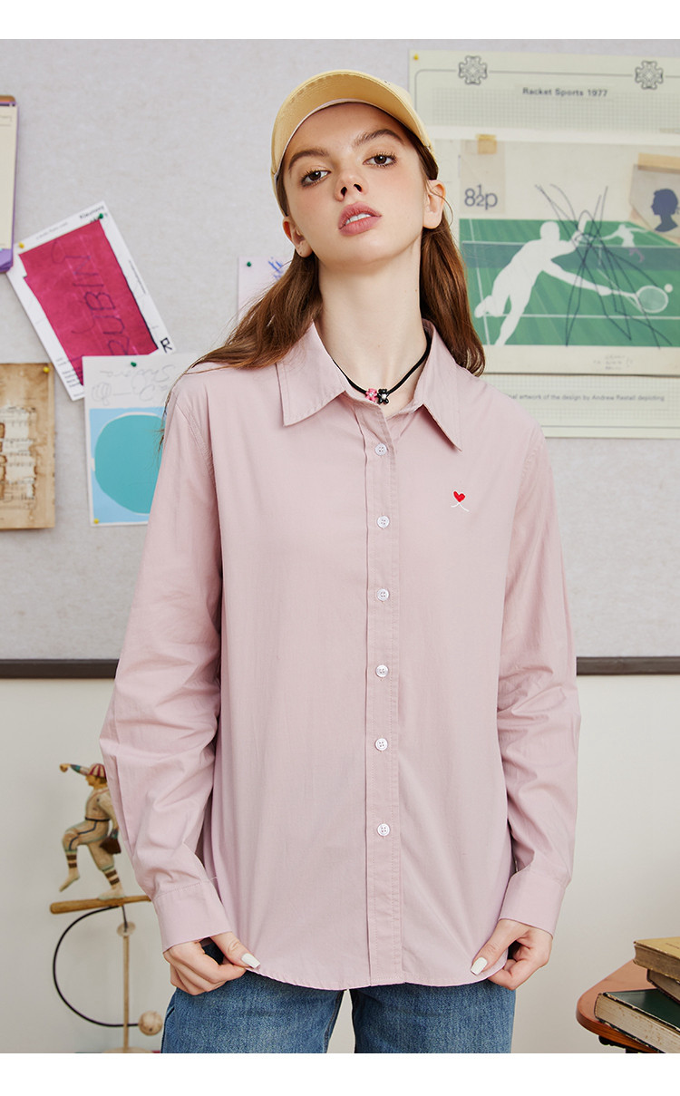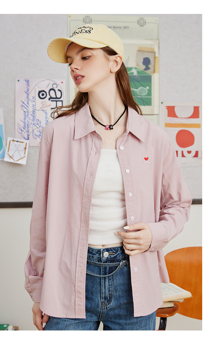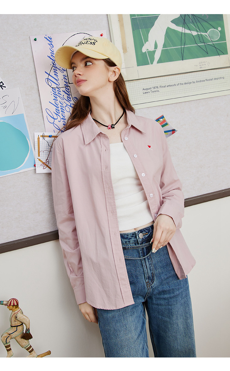 时尚刺绣简约基础款女式衬衫春季休闲百搭长袖上衣 896605