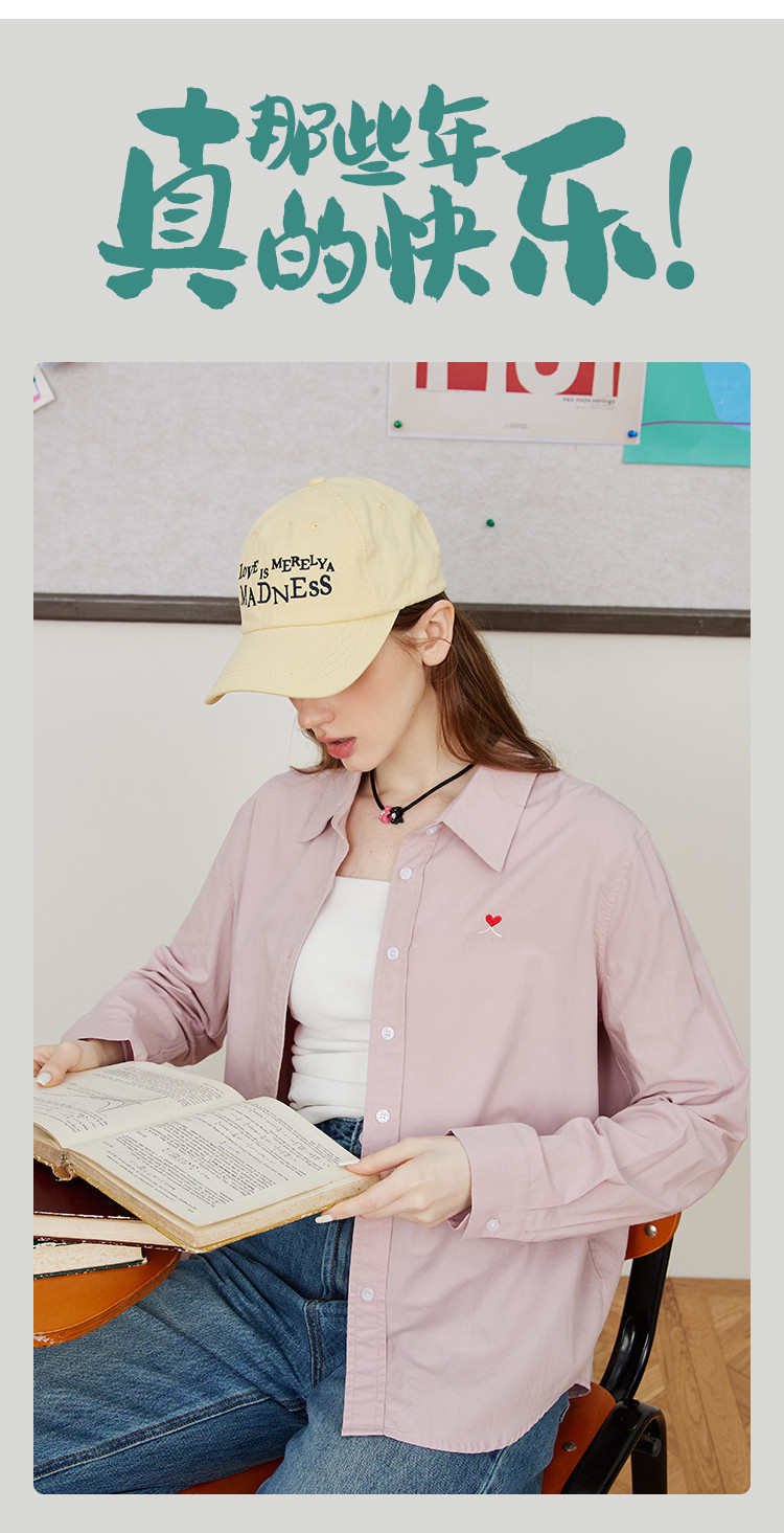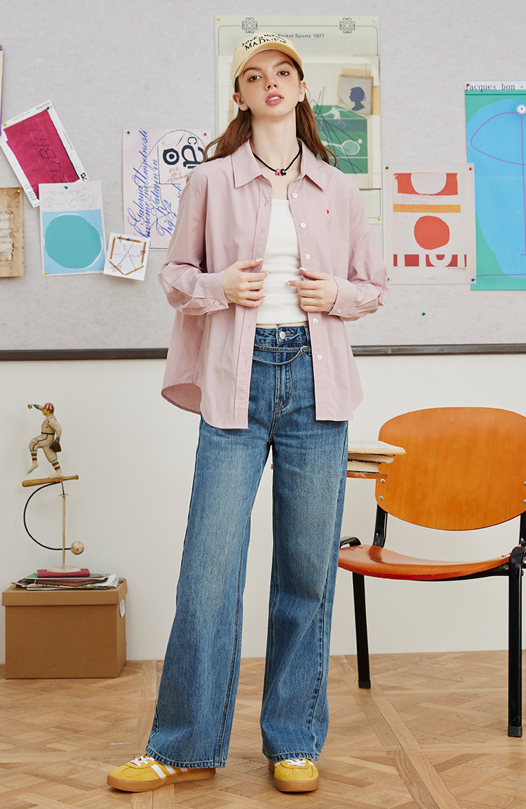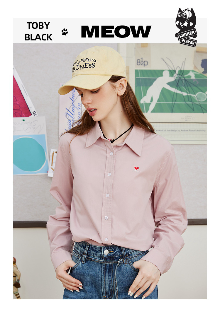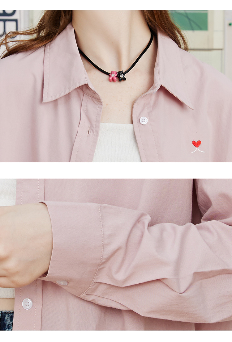 时尚刺绣简约基础款女式衬衫春季休闲百搭长袖上衣 896605