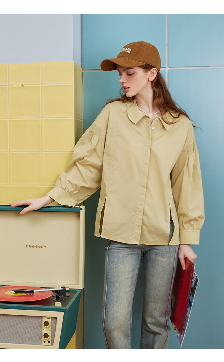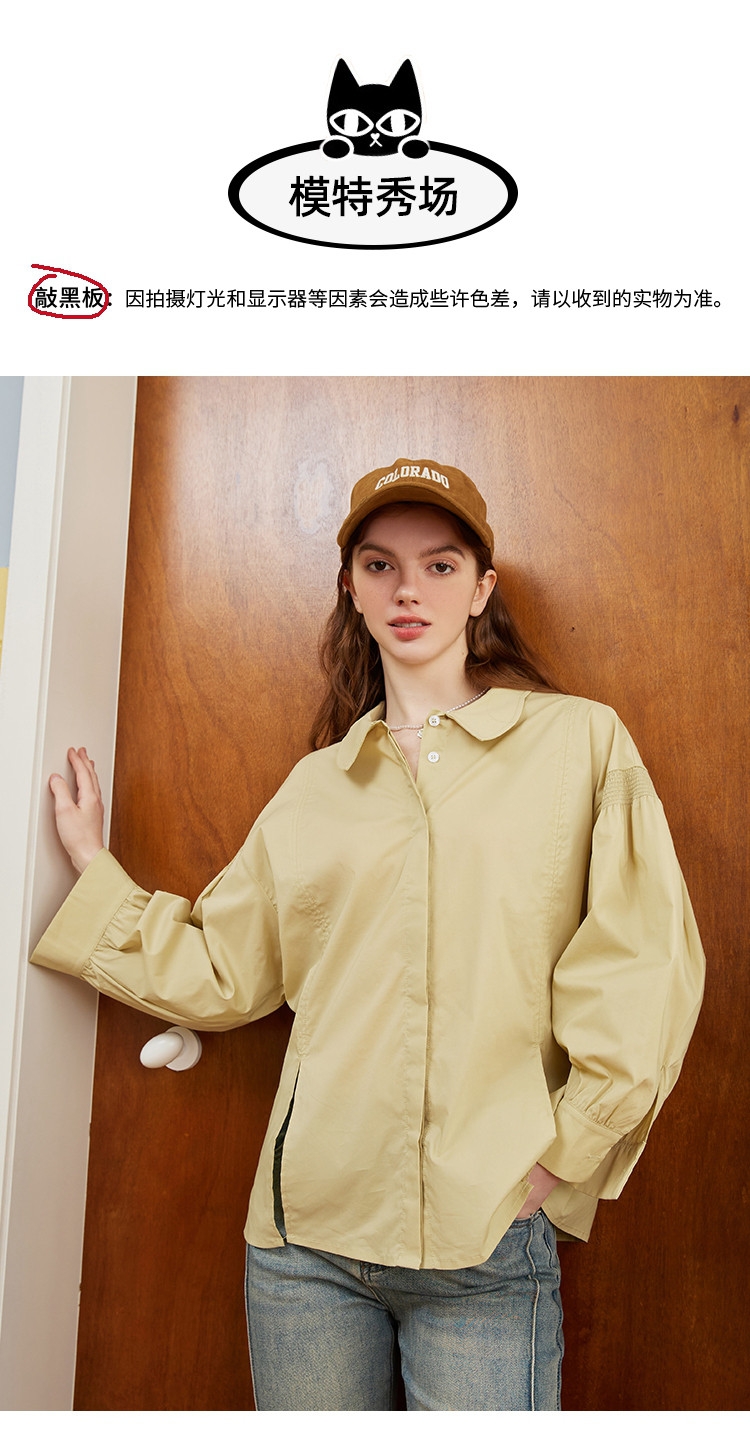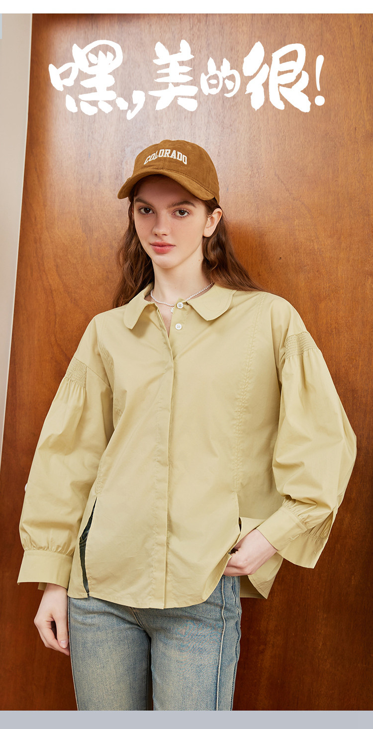 商品名称:娃娃领宽松慵懒风设计感法式上衣春季休闲女式衬衫 240541
