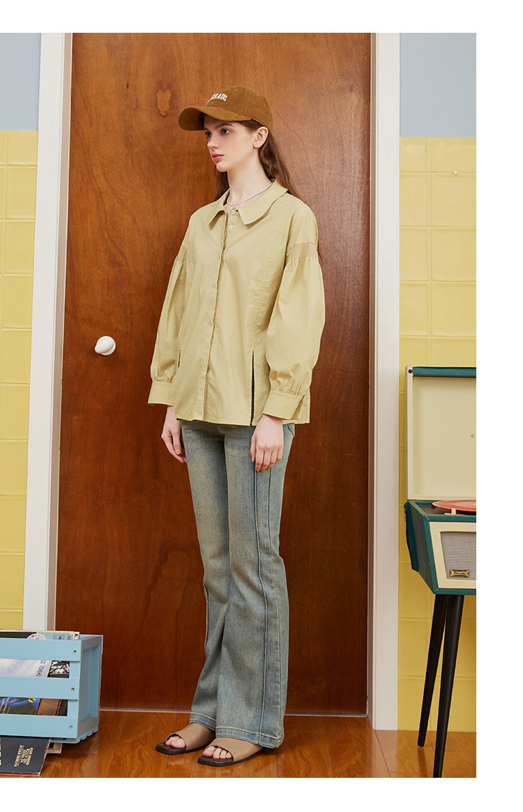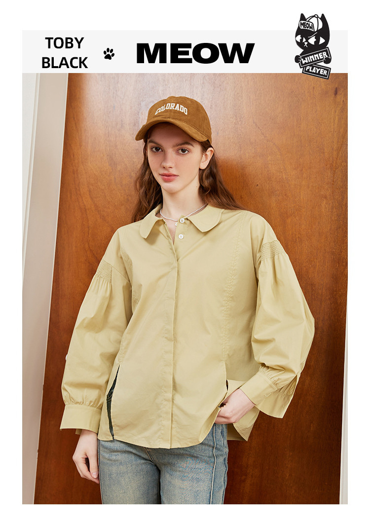 娃娃领宽松慵懒风设计感法式上衣春季休闲女式衬衫 240541