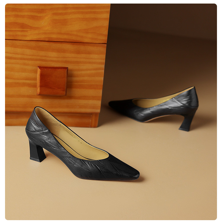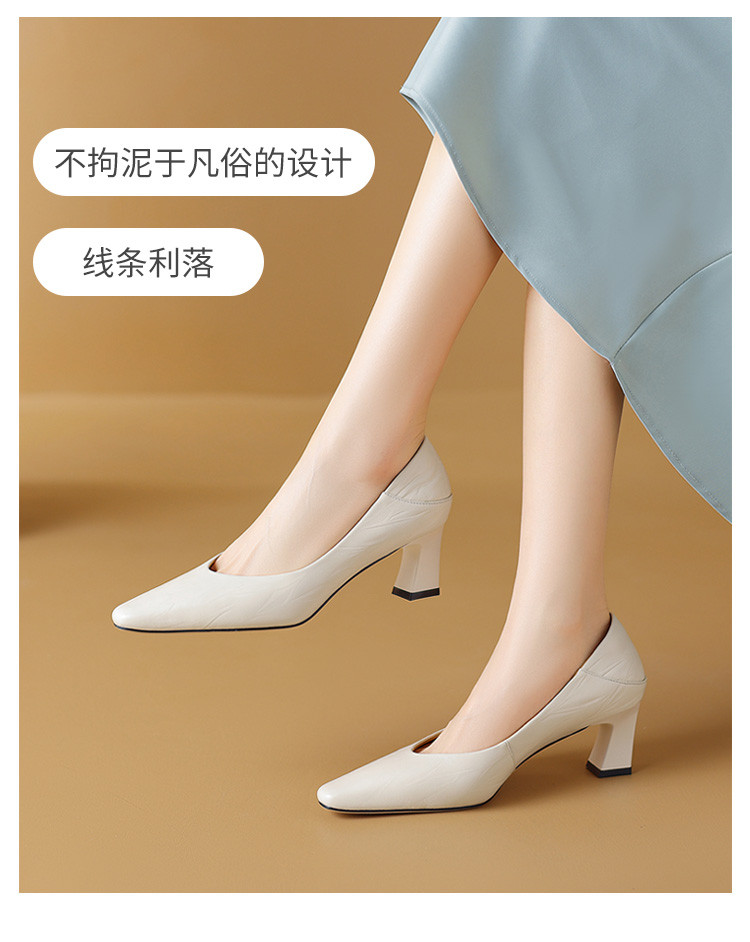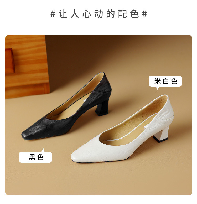 商品名称:【羊皮】25秋季经典简约浅口通勤鞋气质百搭粗跟真皮舒适女鞋子 959116