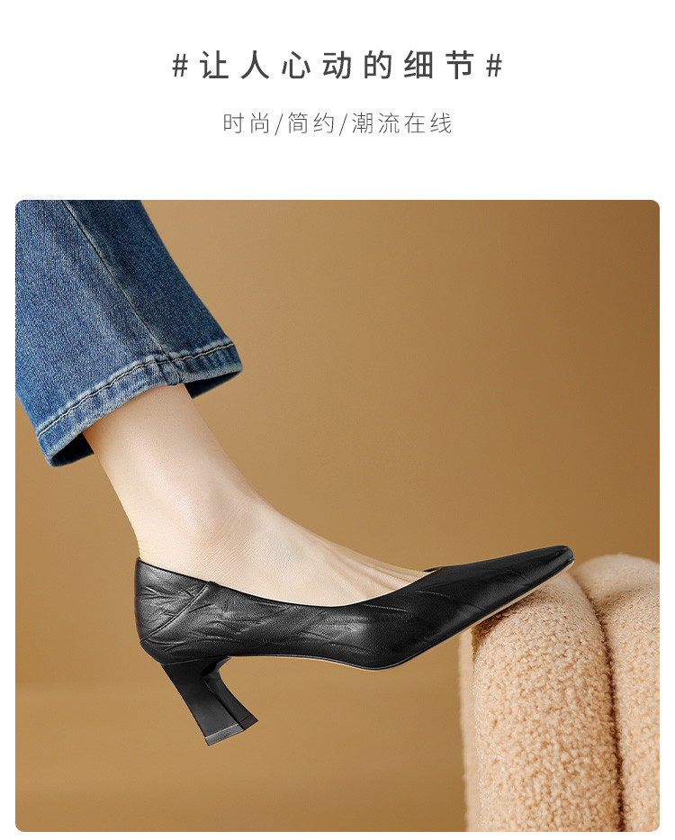 【羊皮】25秋季经典简约浅口通勤鞋气质百搭粗跟真皮舒适女鞋子 959116