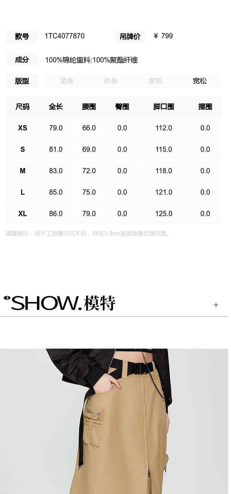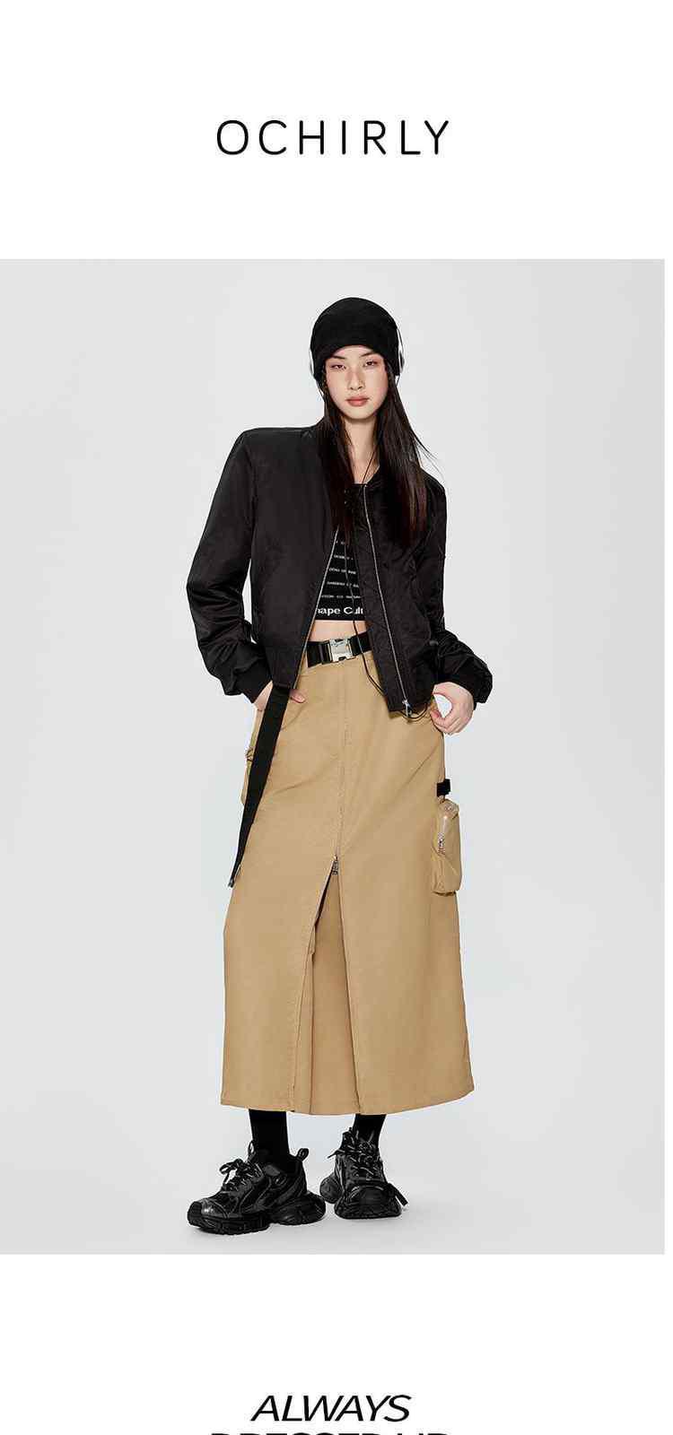 商品名称:春装 休闲机能风中长款降落伞工装半身裙女 323535